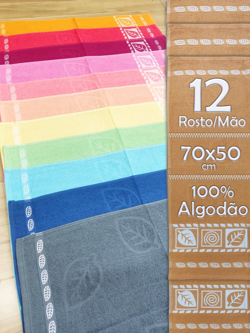 12 Unidades Toalha De Rosto Bordado em Folha Várias Cores