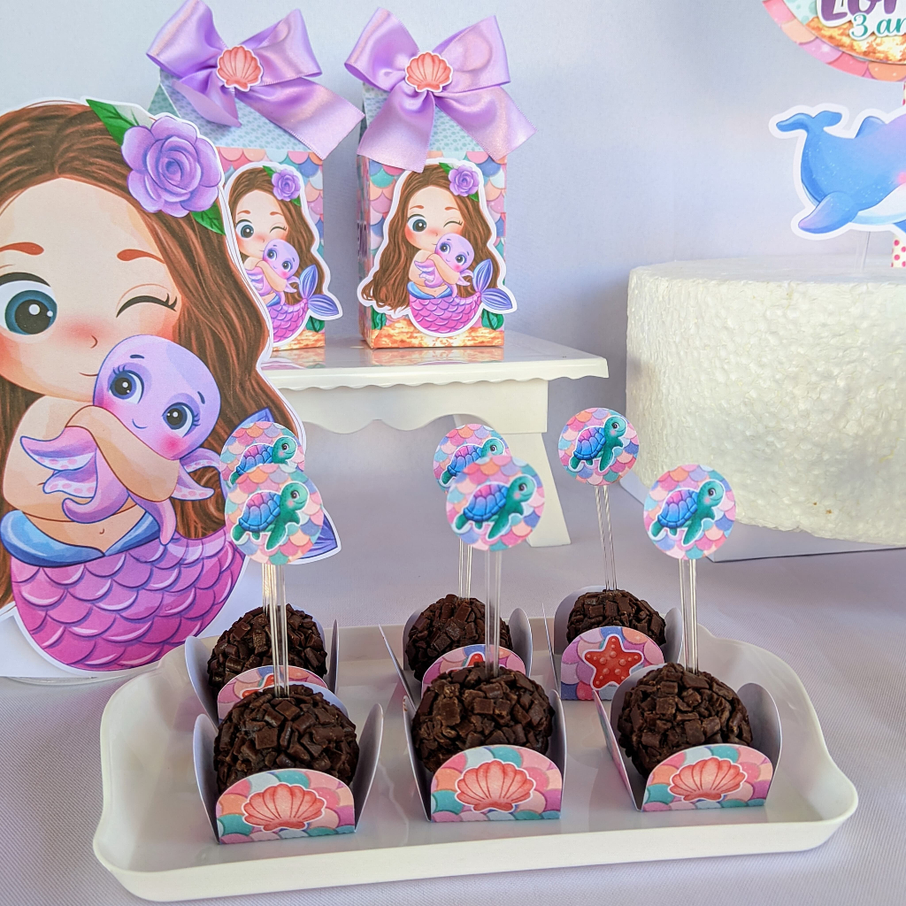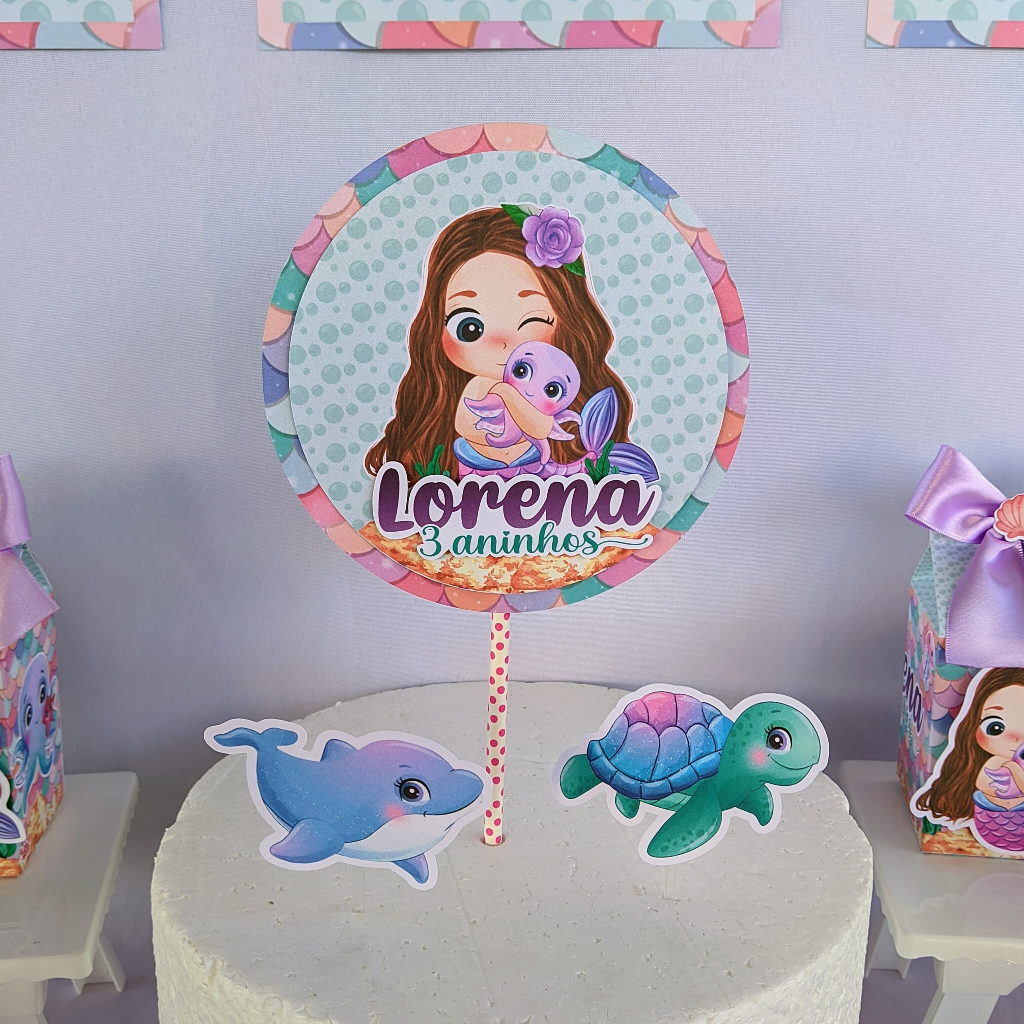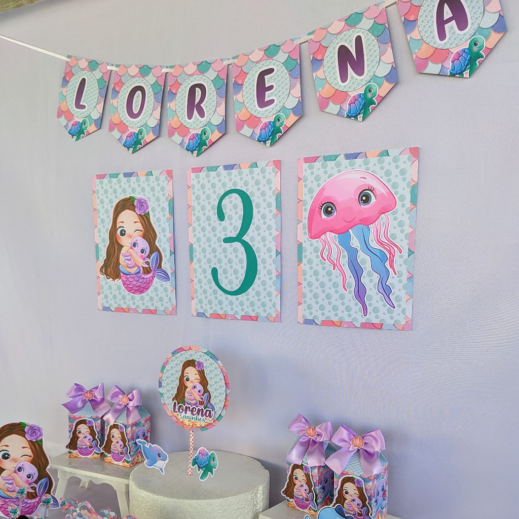 Kit Só um Bolinho - Sereia | Fundo do Mar Personalizado | Mesversário Aniversário | Decoração Casa Escola