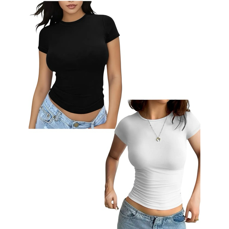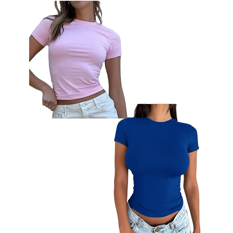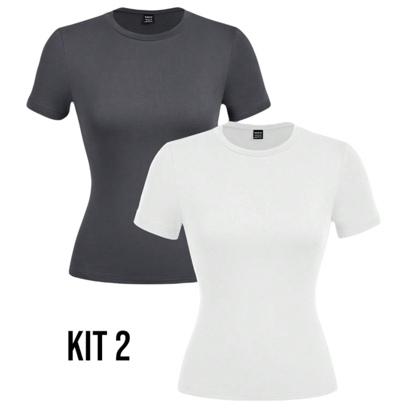 Kit 2 Blusa Manga Curta Baby Tee Suplex Moda Gringa Tshirt Gola O