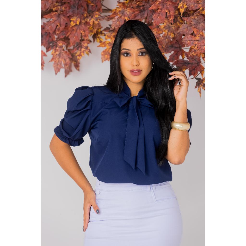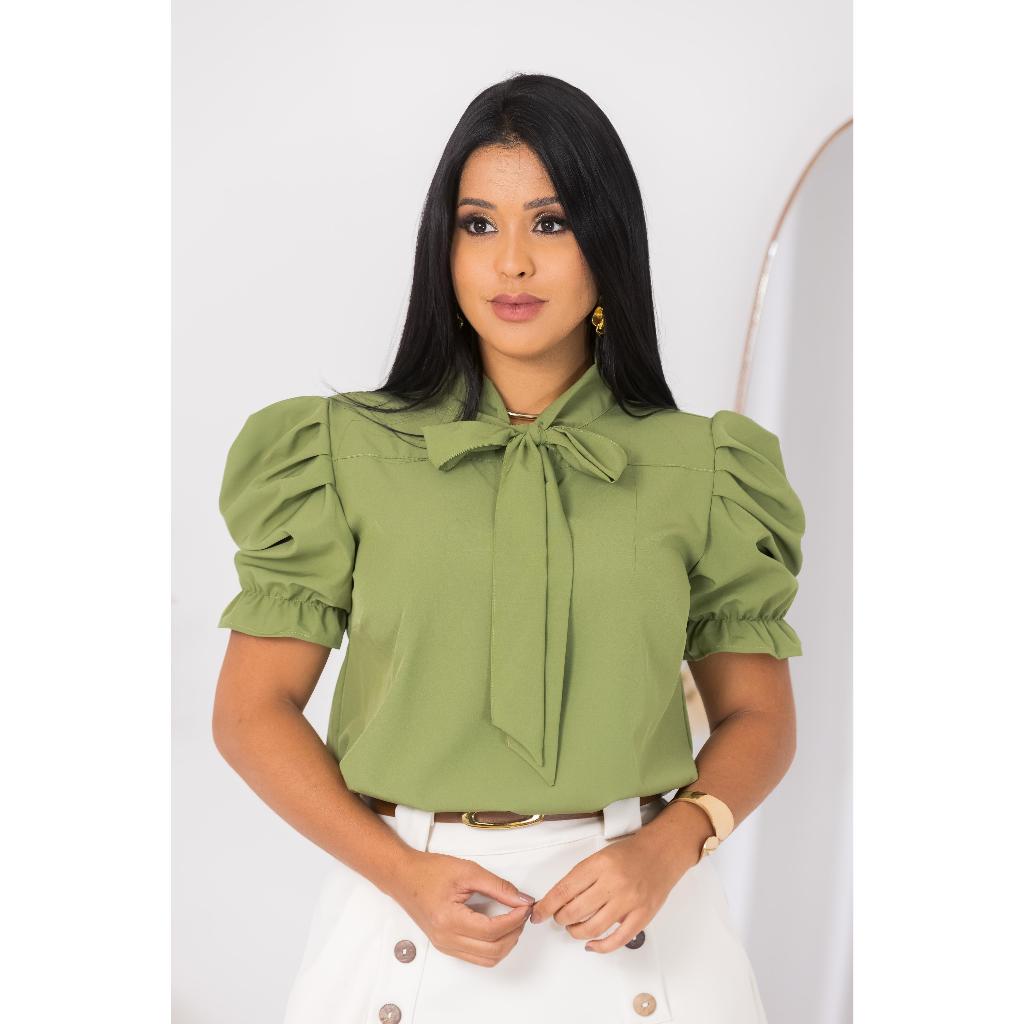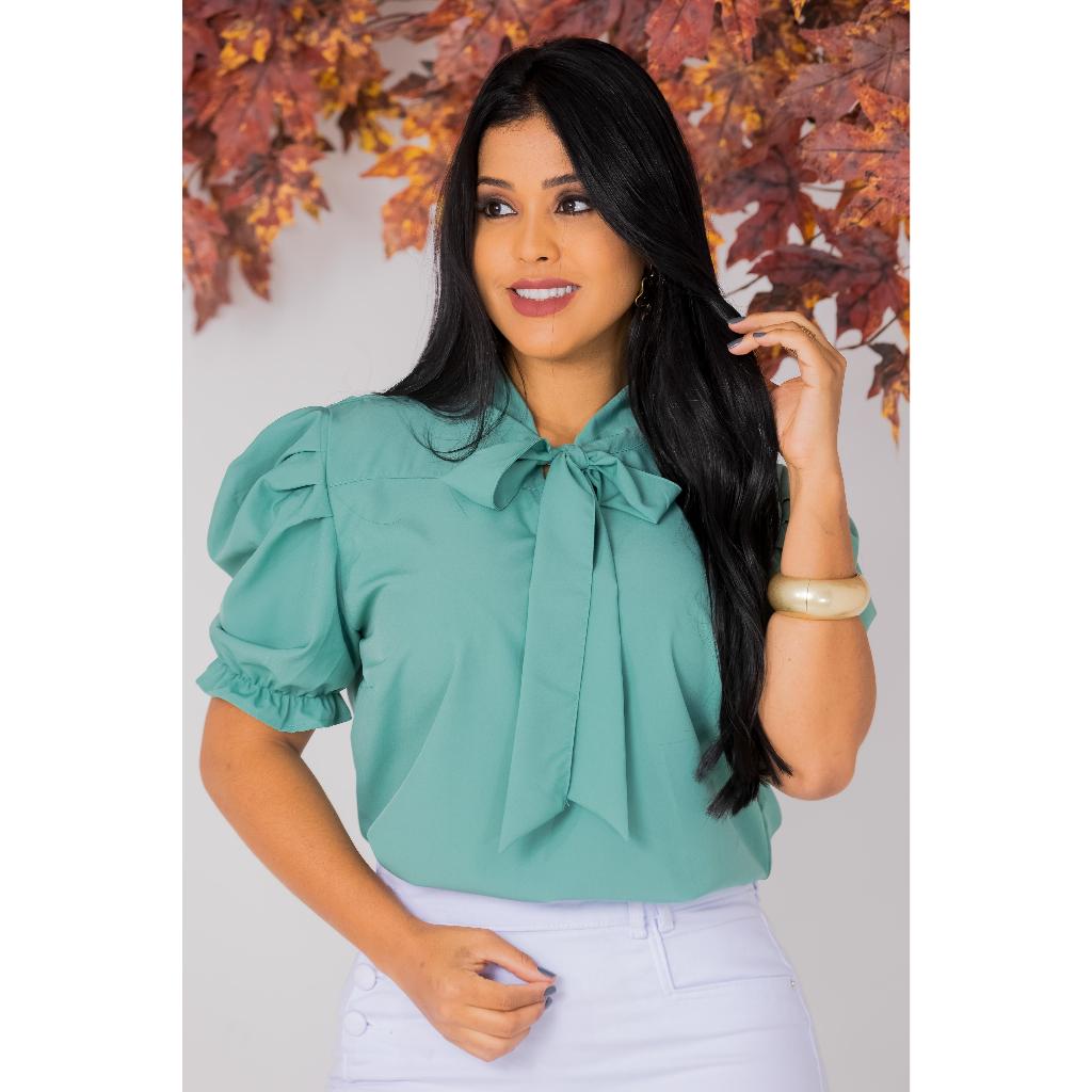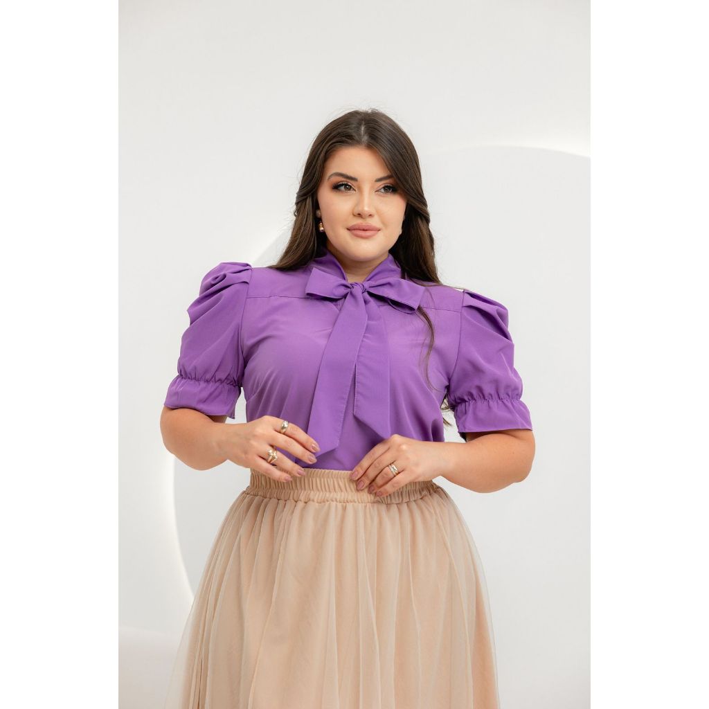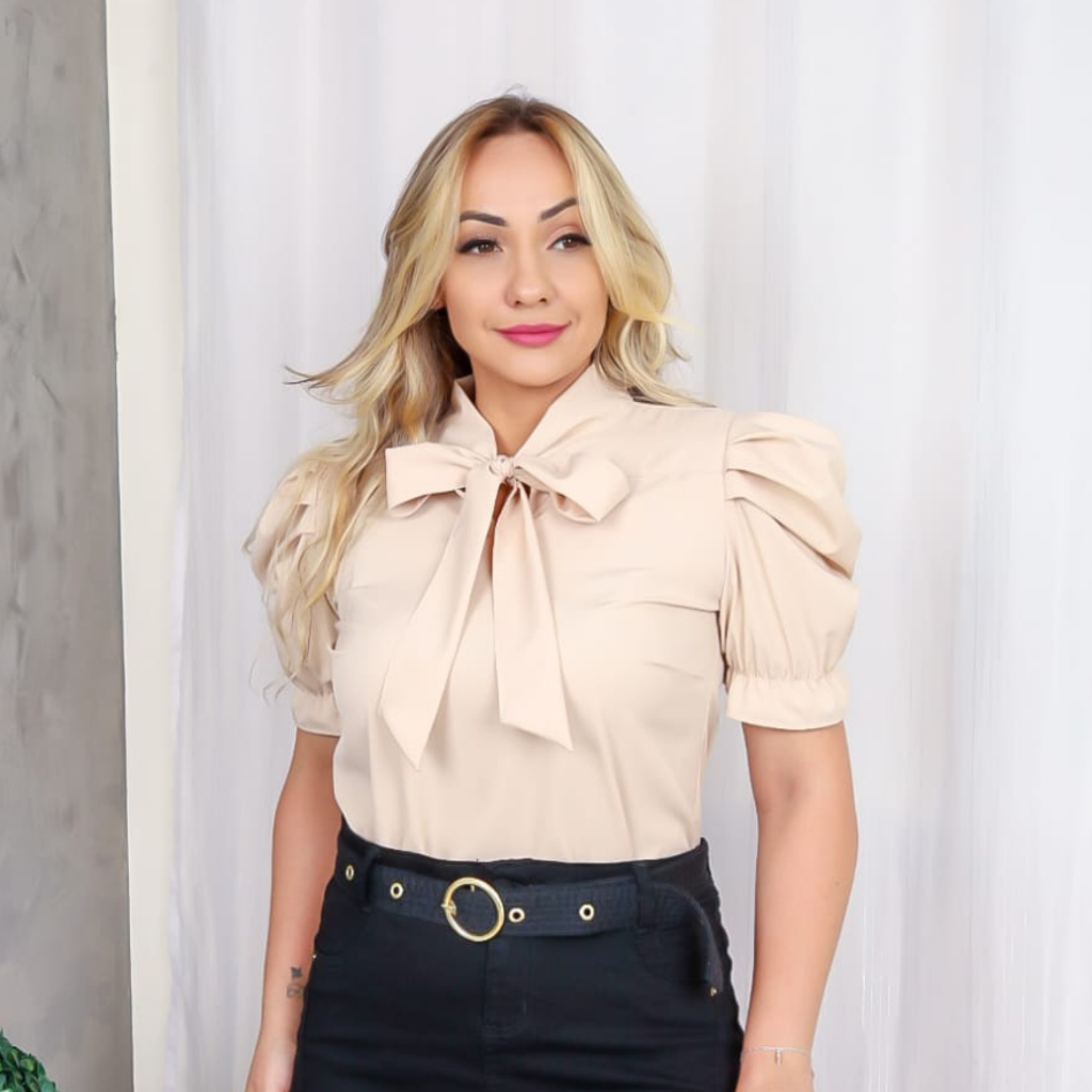 Blusa Feminina Emily Gola Laço Manga Curta Princesa Moda Evangélica