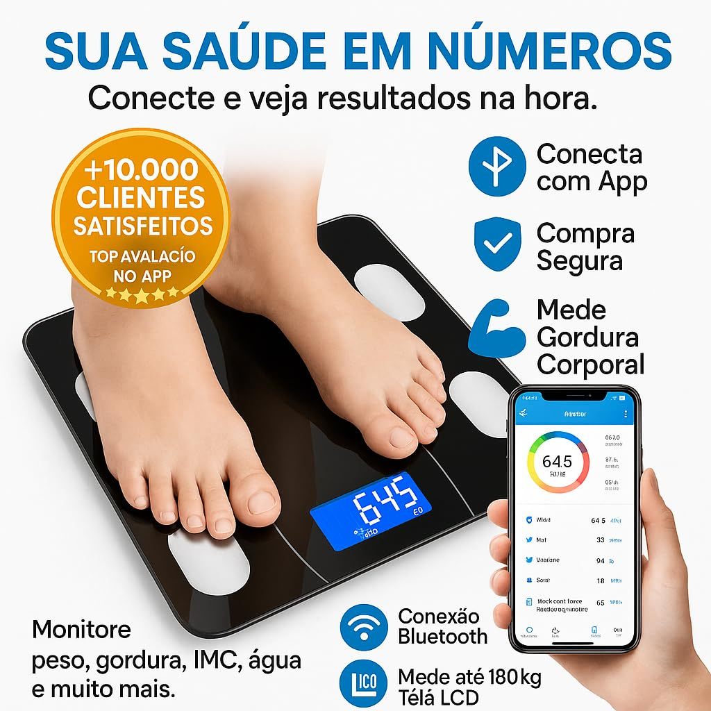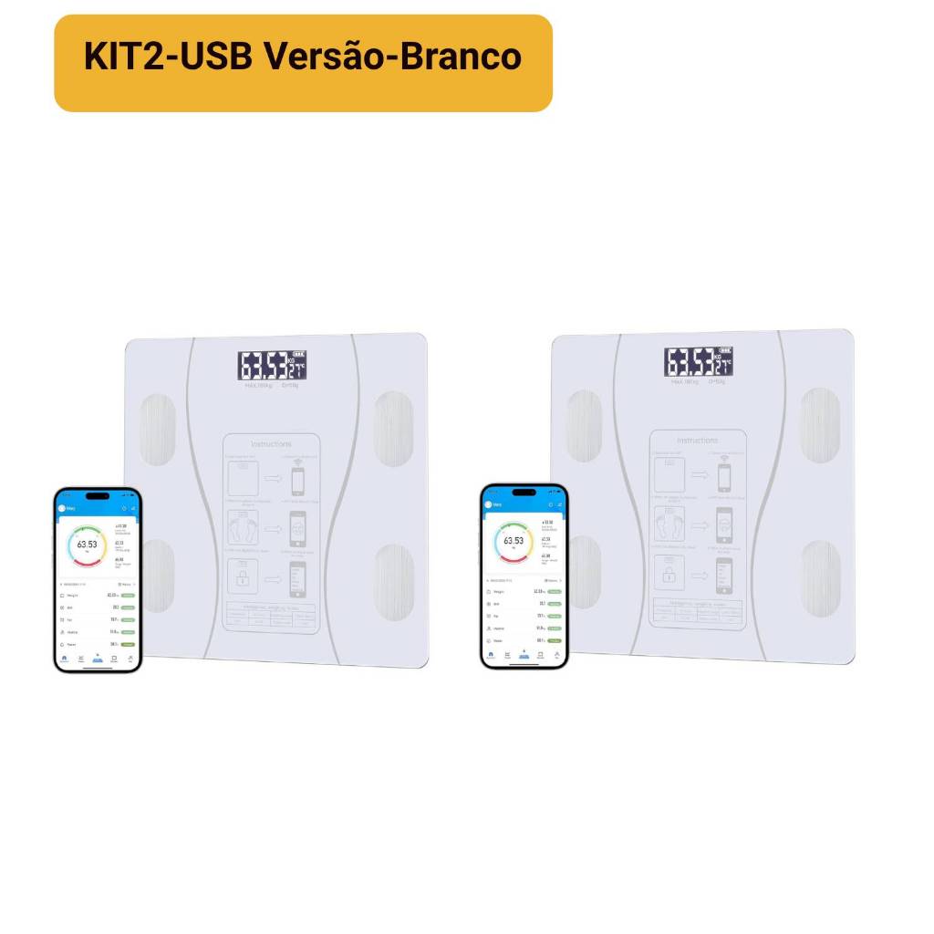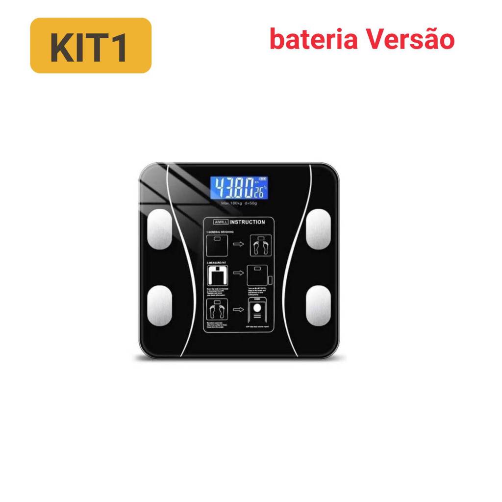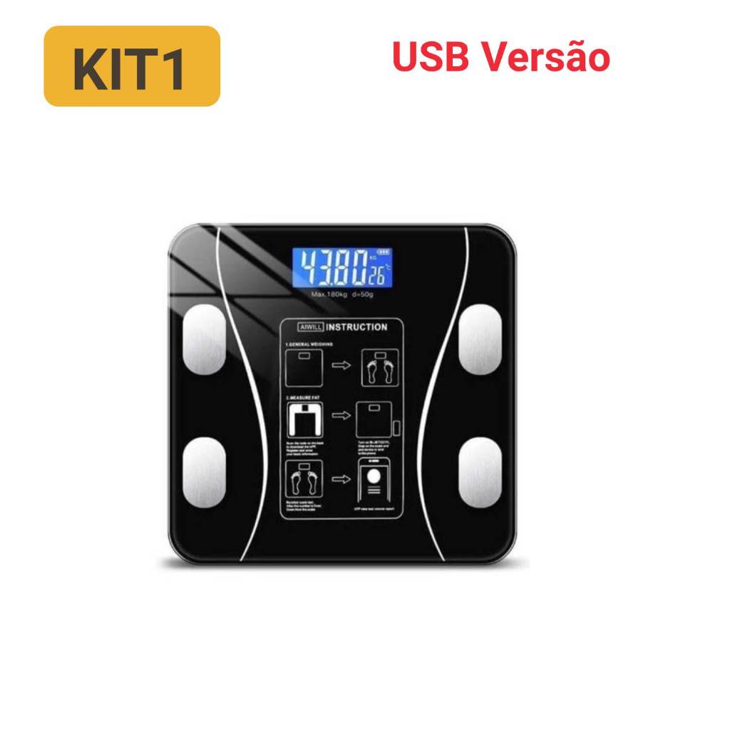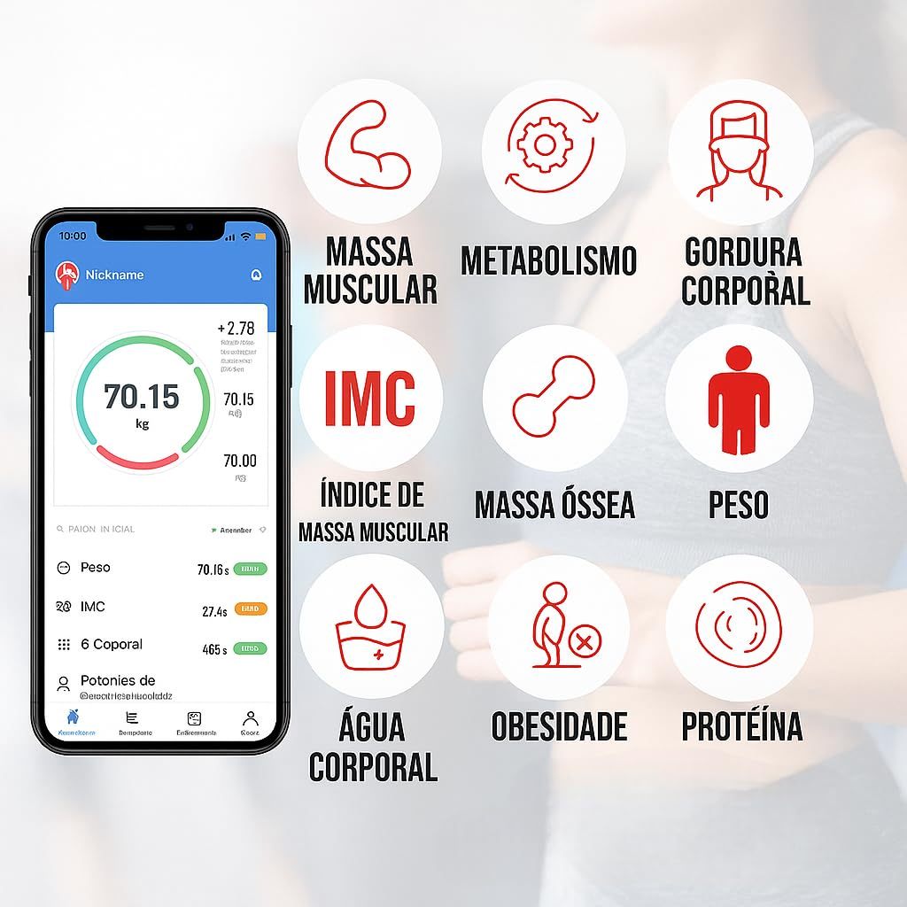 Balança Digital Corporal Bioimpedância Profissional Bluetooth, Smart App Premium Com Visor Inteligente USB Recarregável