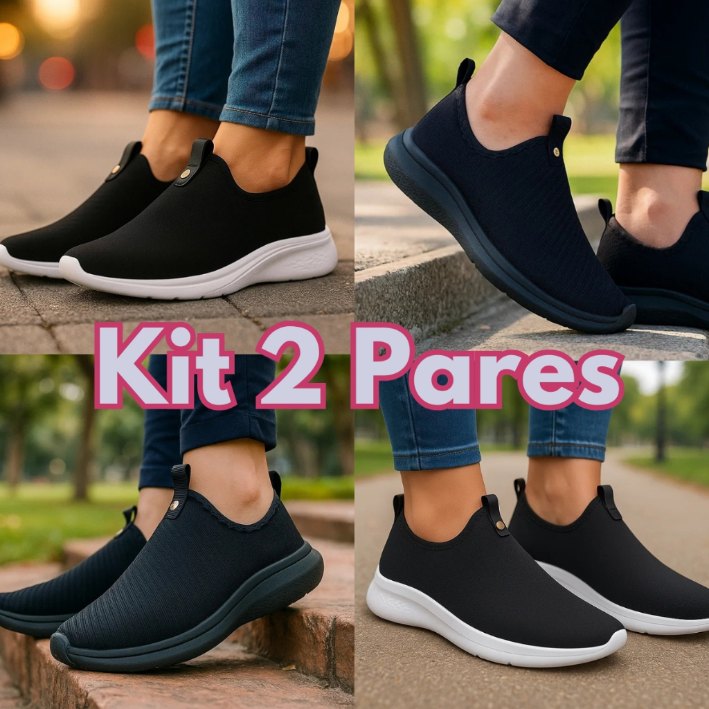 Kit 2 Pares Tenis Meia feminino Preto Com Pedrinha