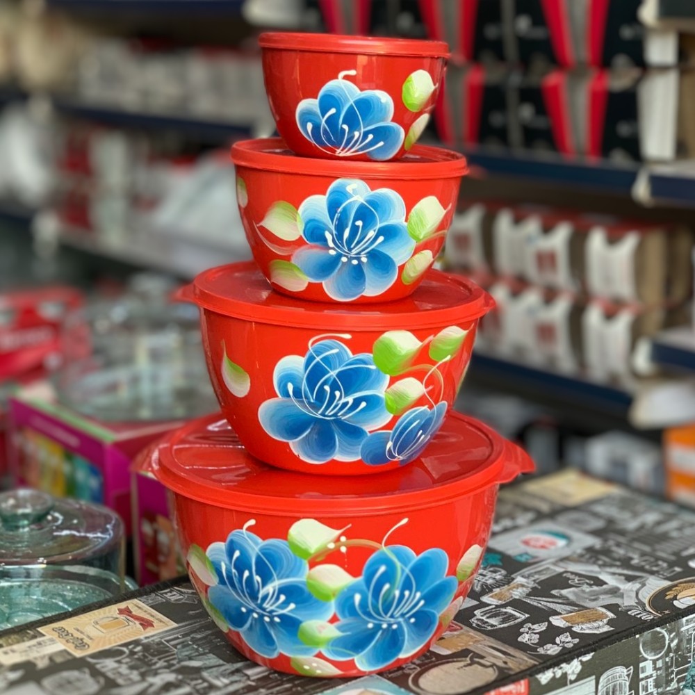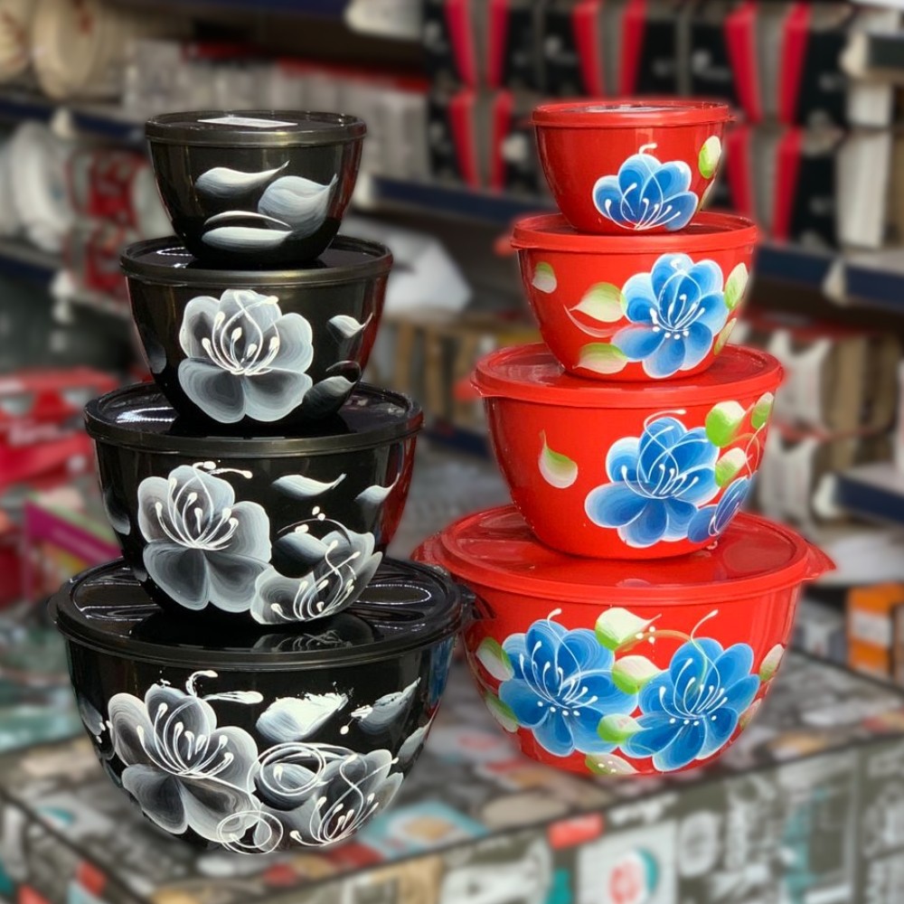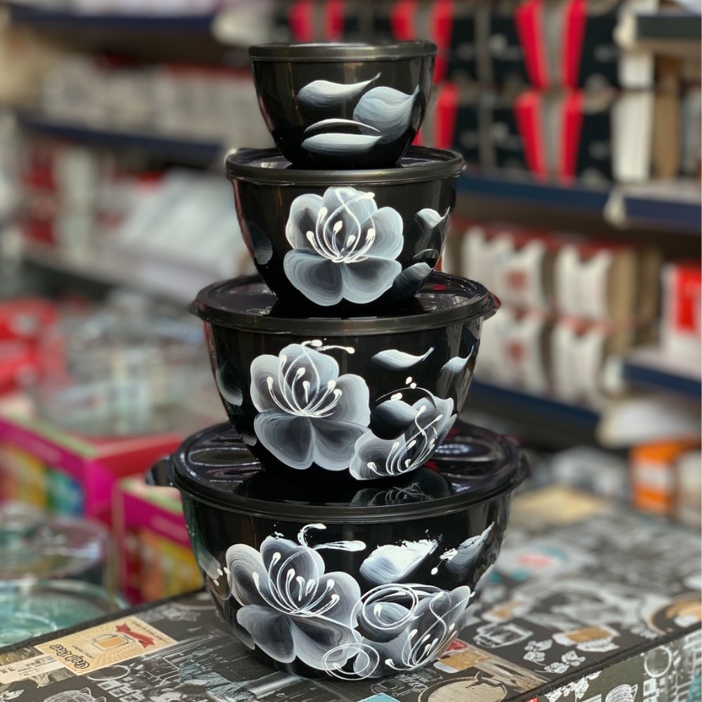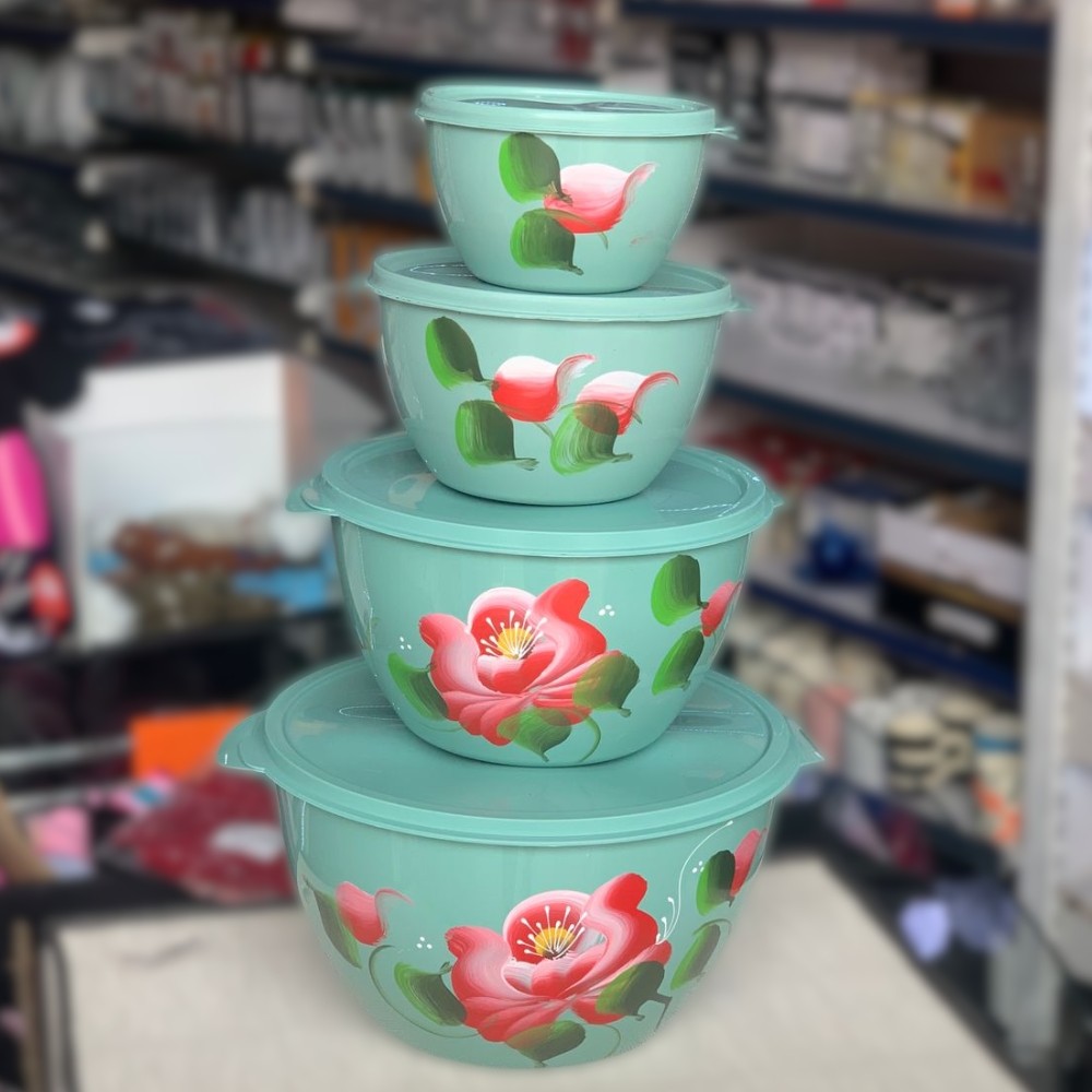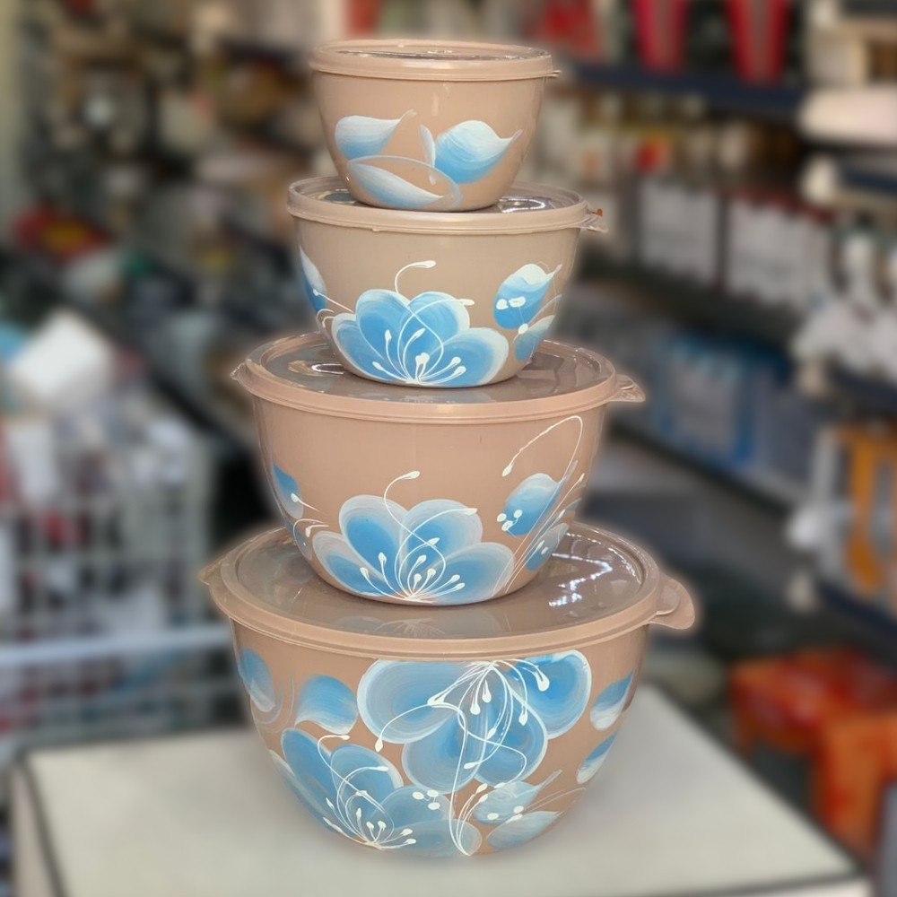Kit Conjunto de 4 Potes Redondo 4 Tamanhos Bacia Saladeira Grande