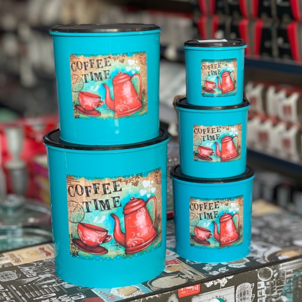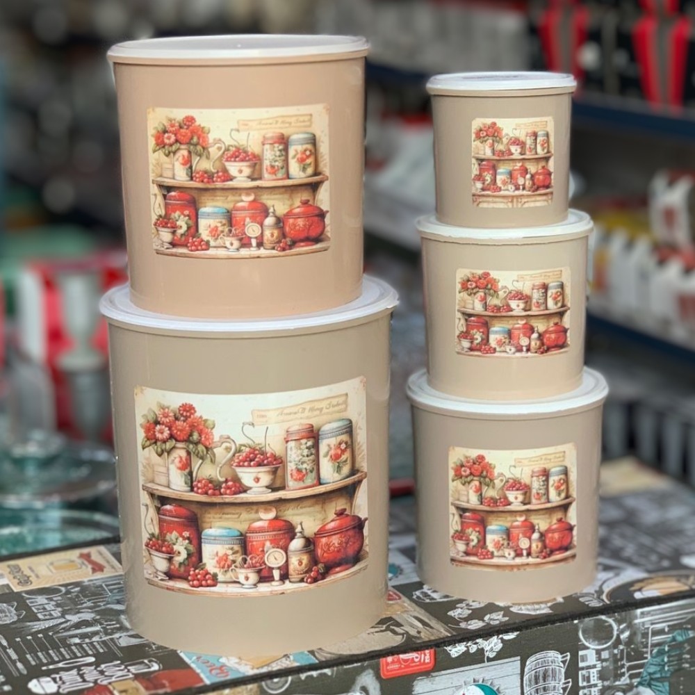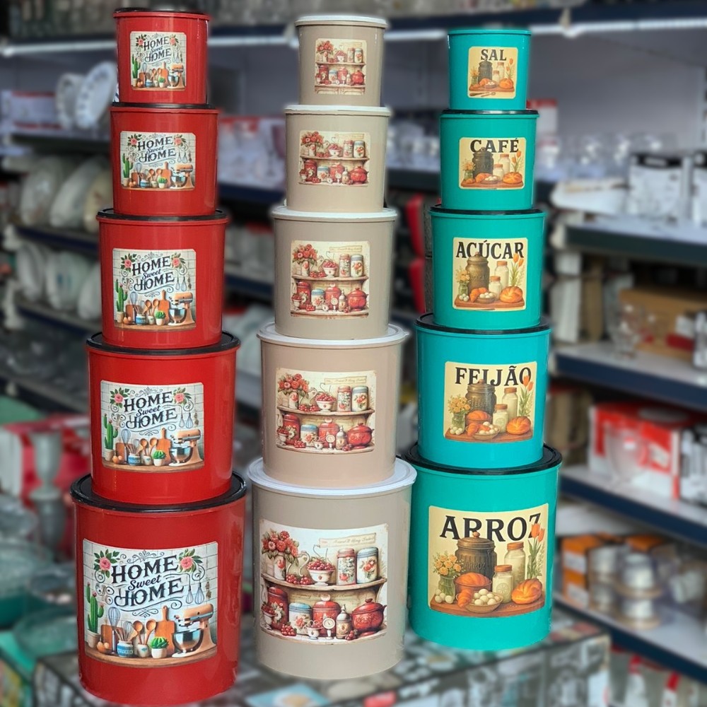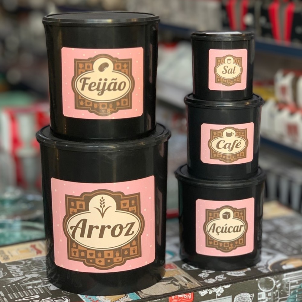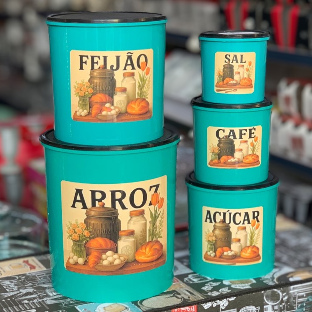 Kit 5 Potes Porta Mantimentos Decorado de Plastico