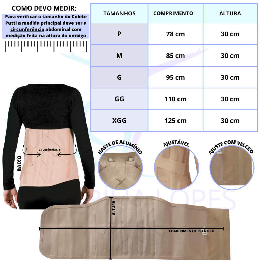 Colete Corretor de Postura Cinta para Coluna Putti Baixo Ortopédico Elástico Unissex Anvisa