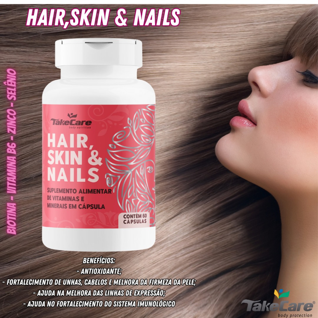 Biotina Hair Skin Nails Tratamento Fortalecimento Capilar Unhas e Pele Protocolo 1 Mês