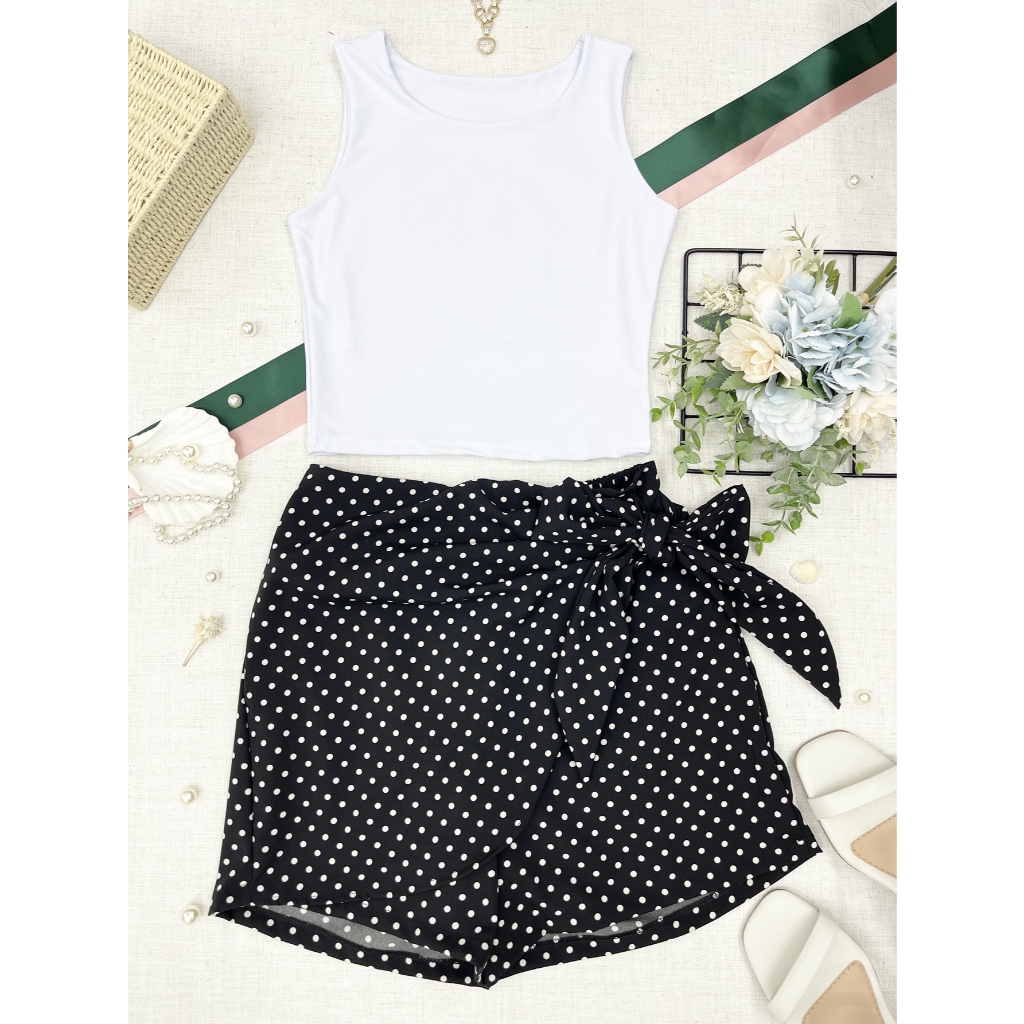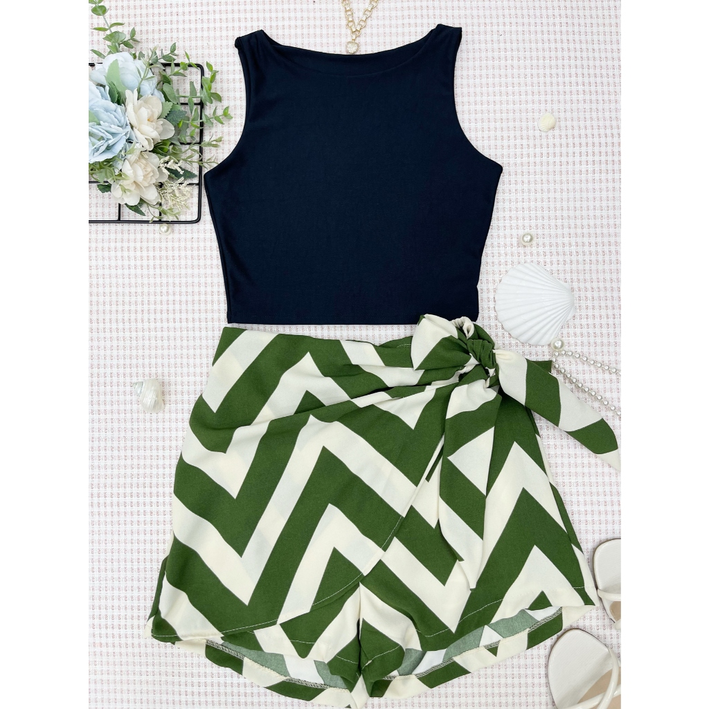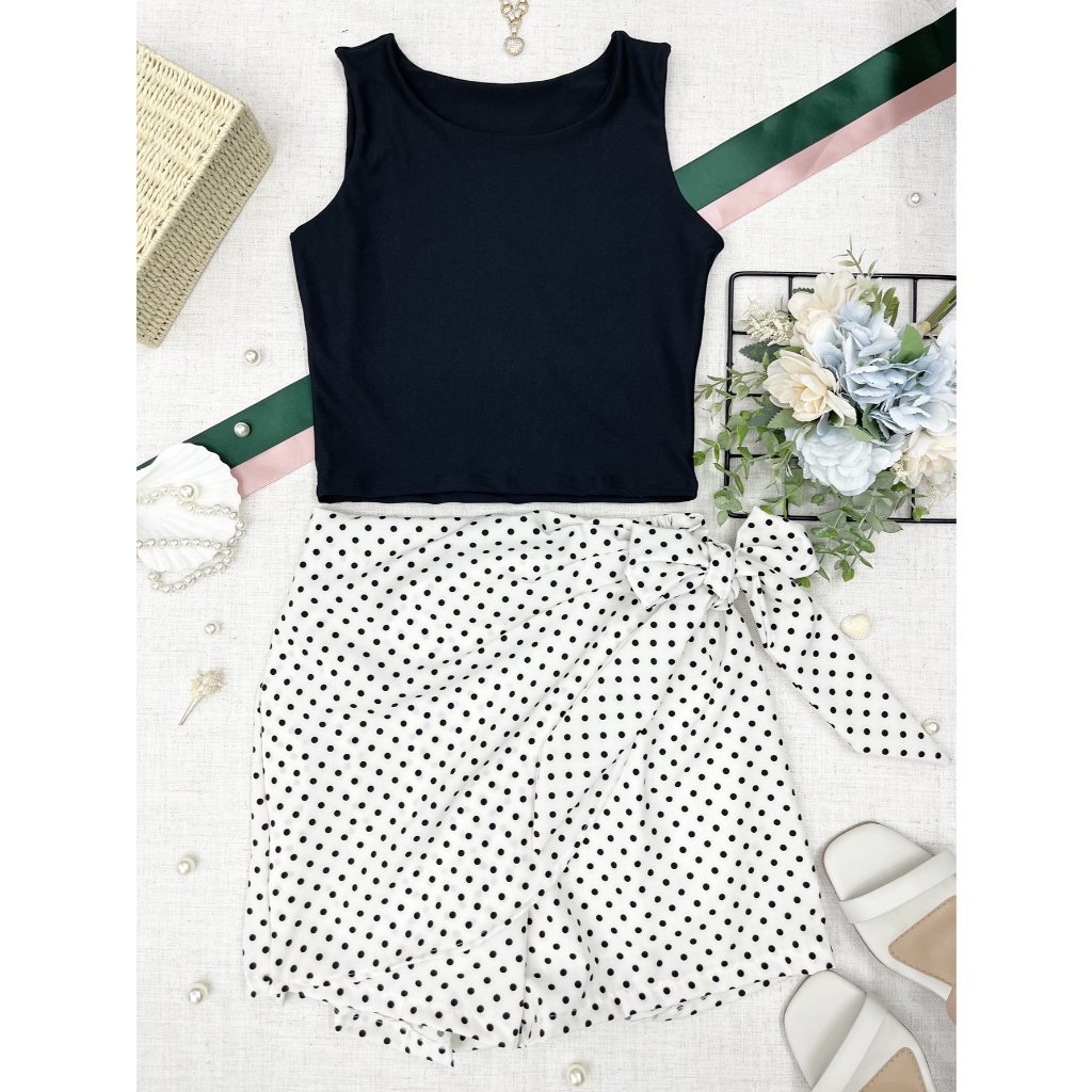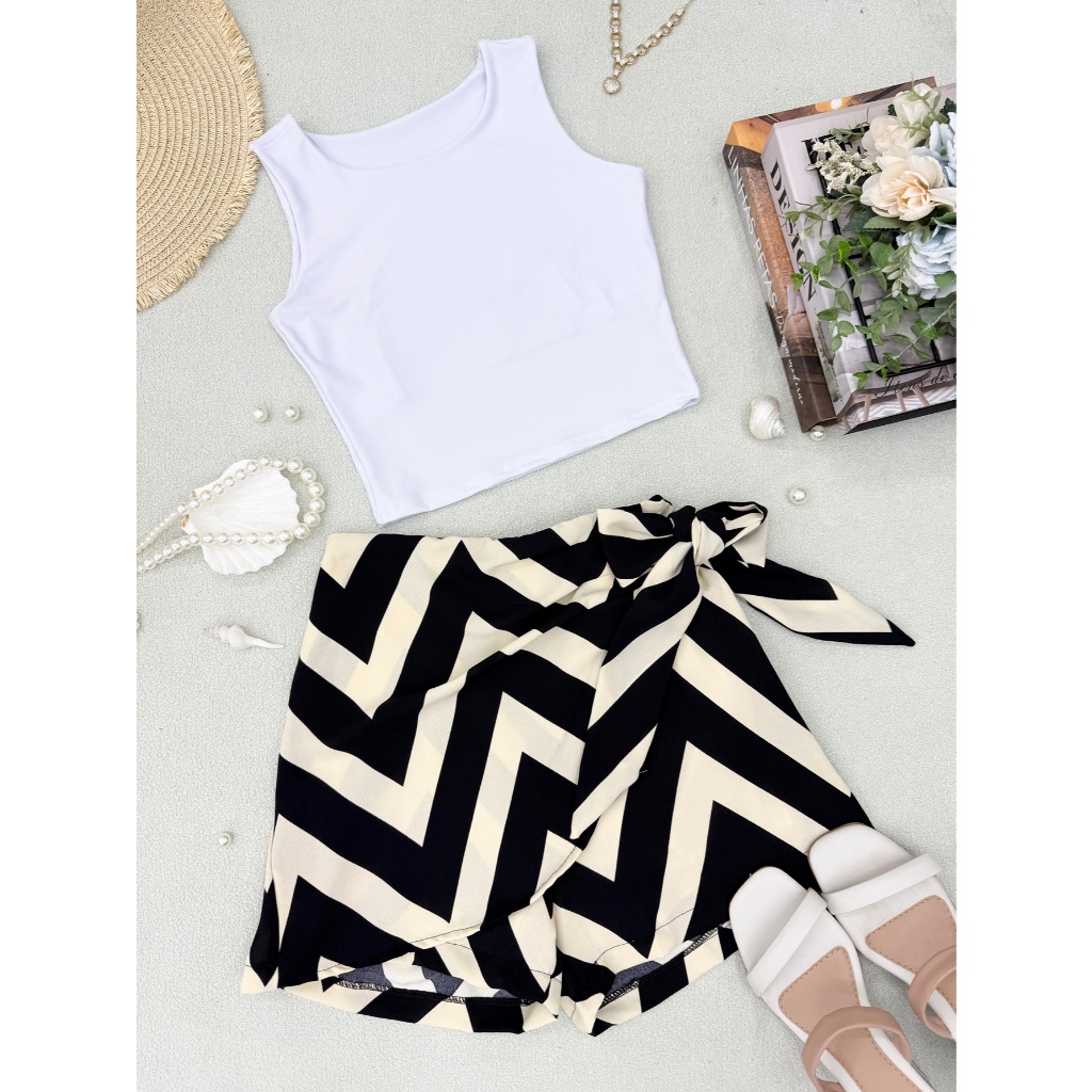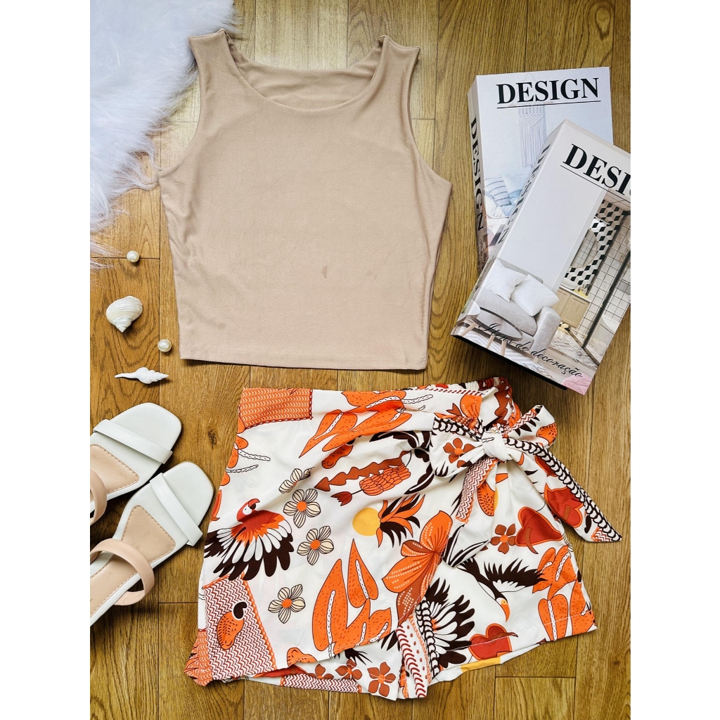 LCQ Conjunto 2pcs de cropped suplex com saia com short com forrado\estampado\moda feminina 100