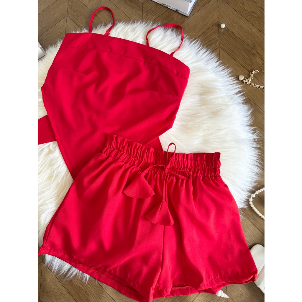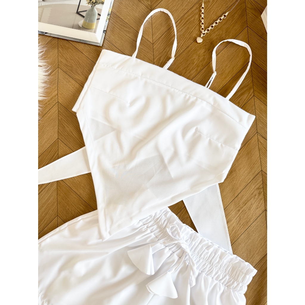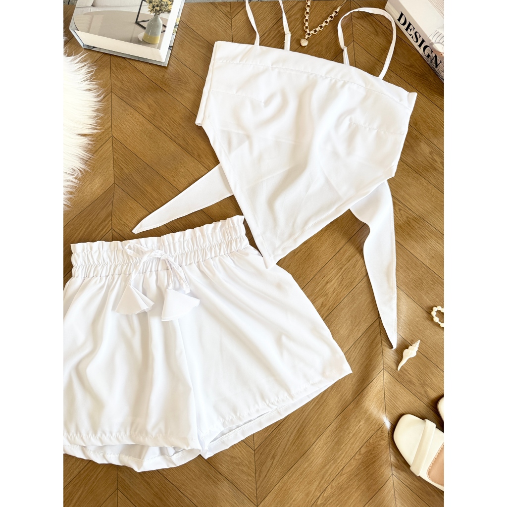 LCQ Conjunto feminina em tecido crepinho de cropped com amarração +short com forrado 212