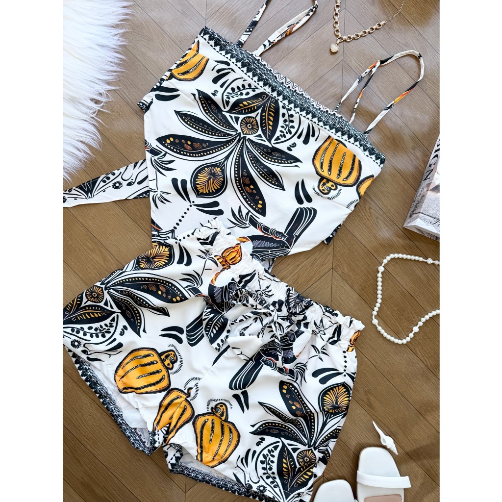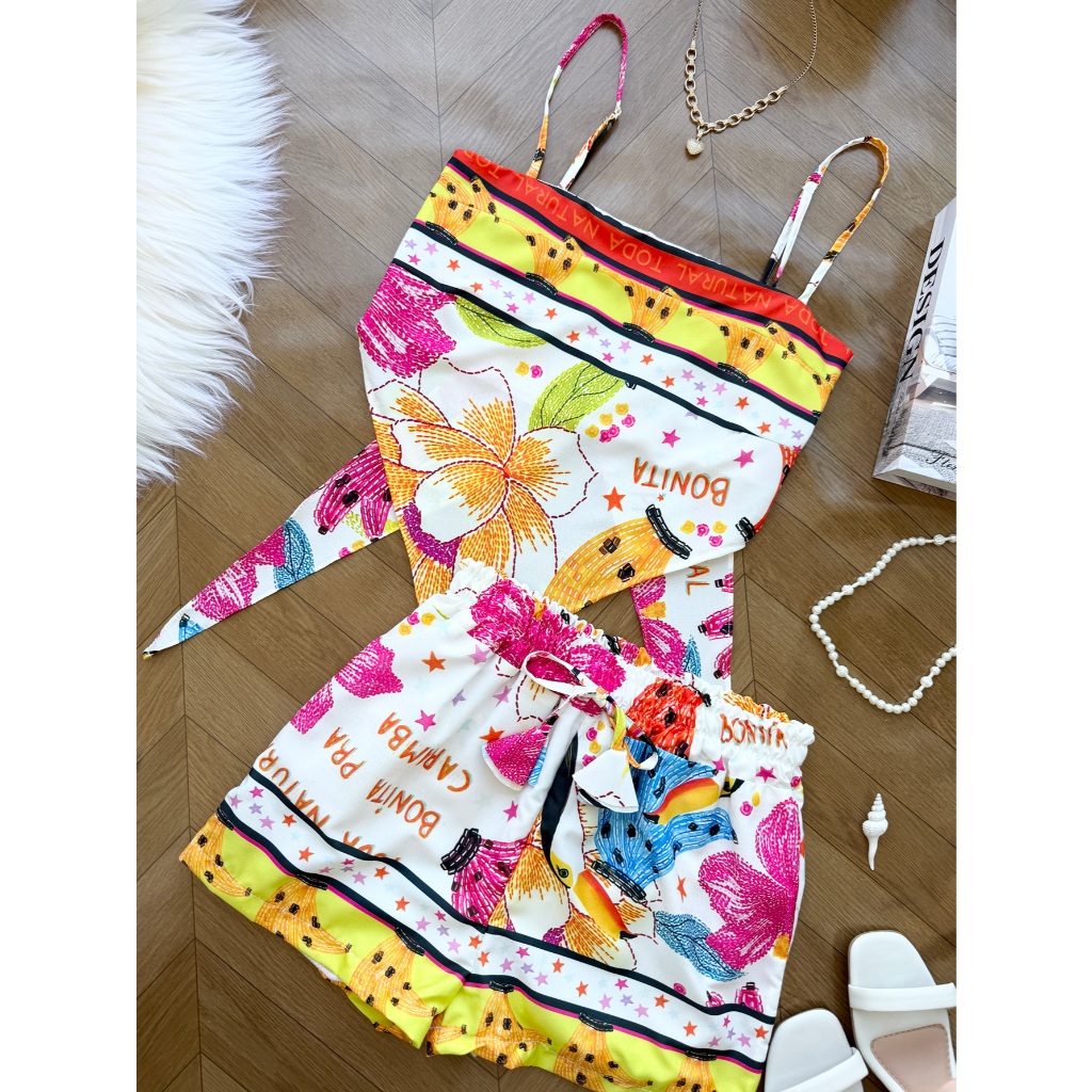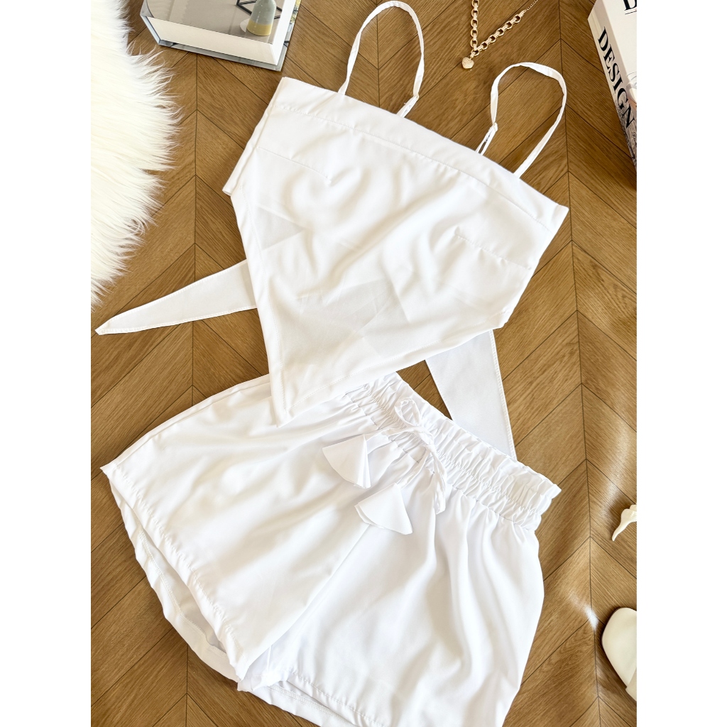 LCQ Conjunto feminina em tecido crepinho de cropped com amarração +short com forrado 212