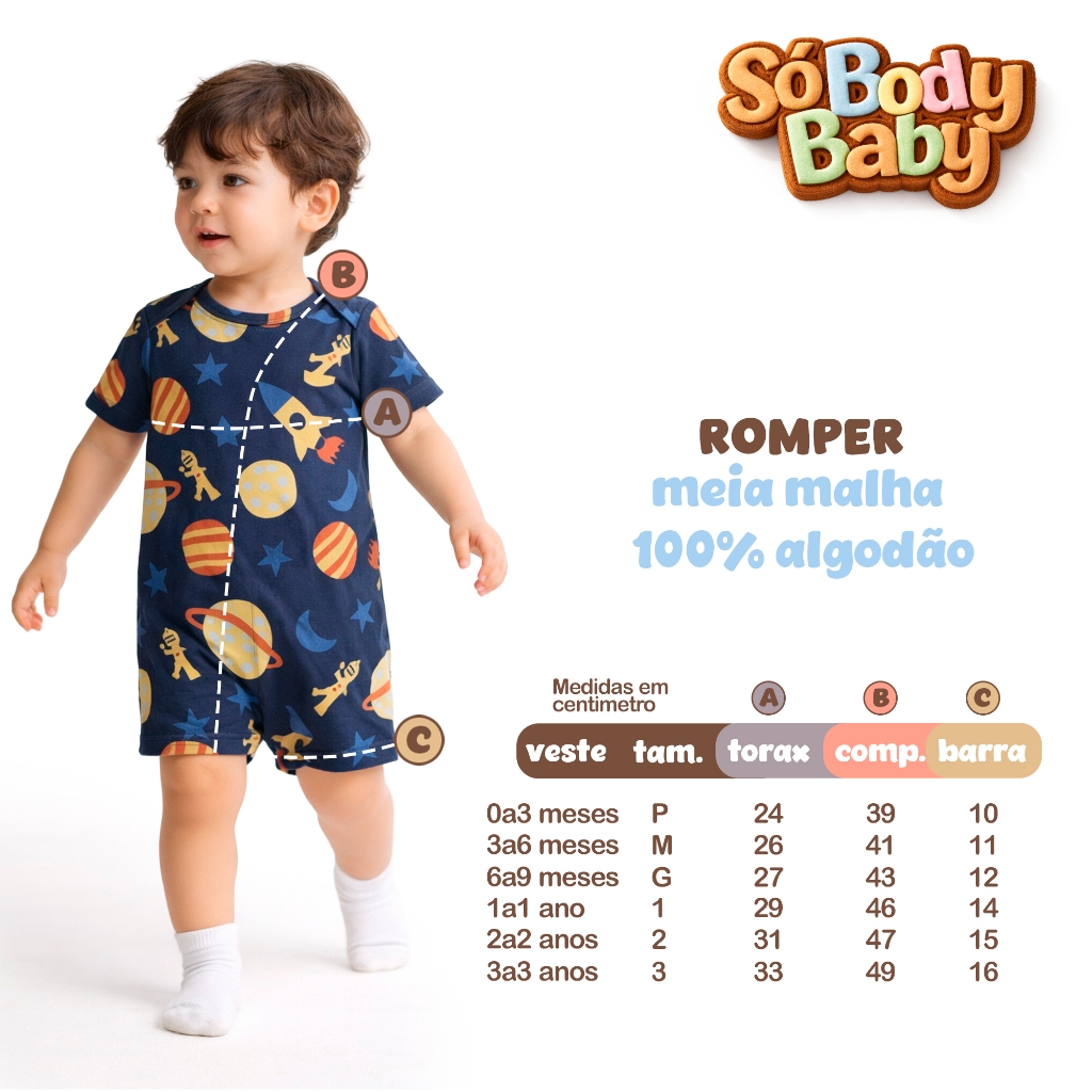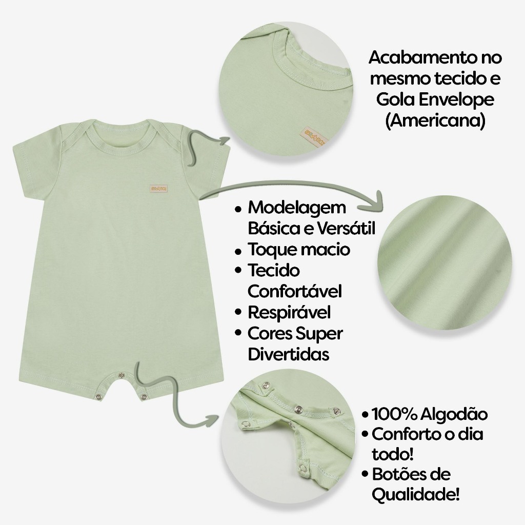 Romper Meia Malha Liso Avulso Menino/Menina - Verão - Tamanhos 1/2/3/P/M/G