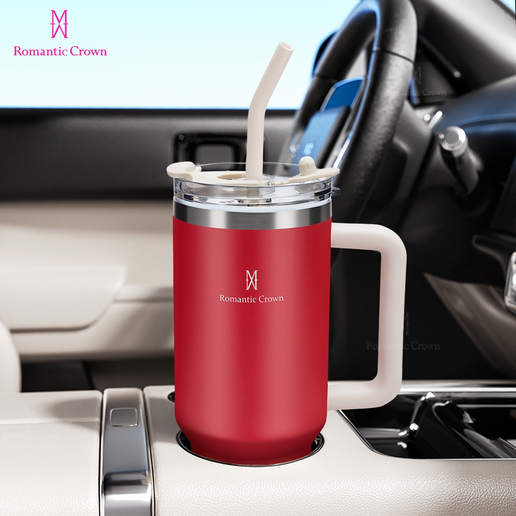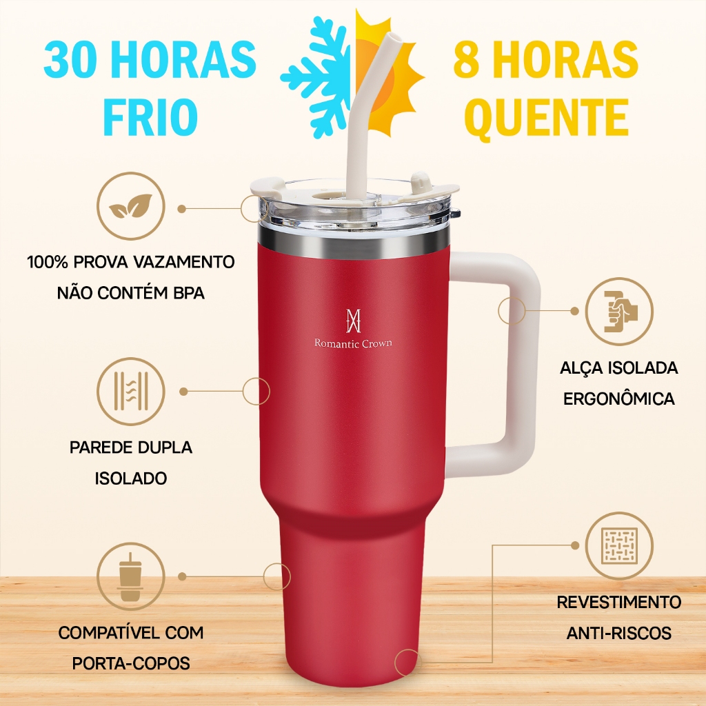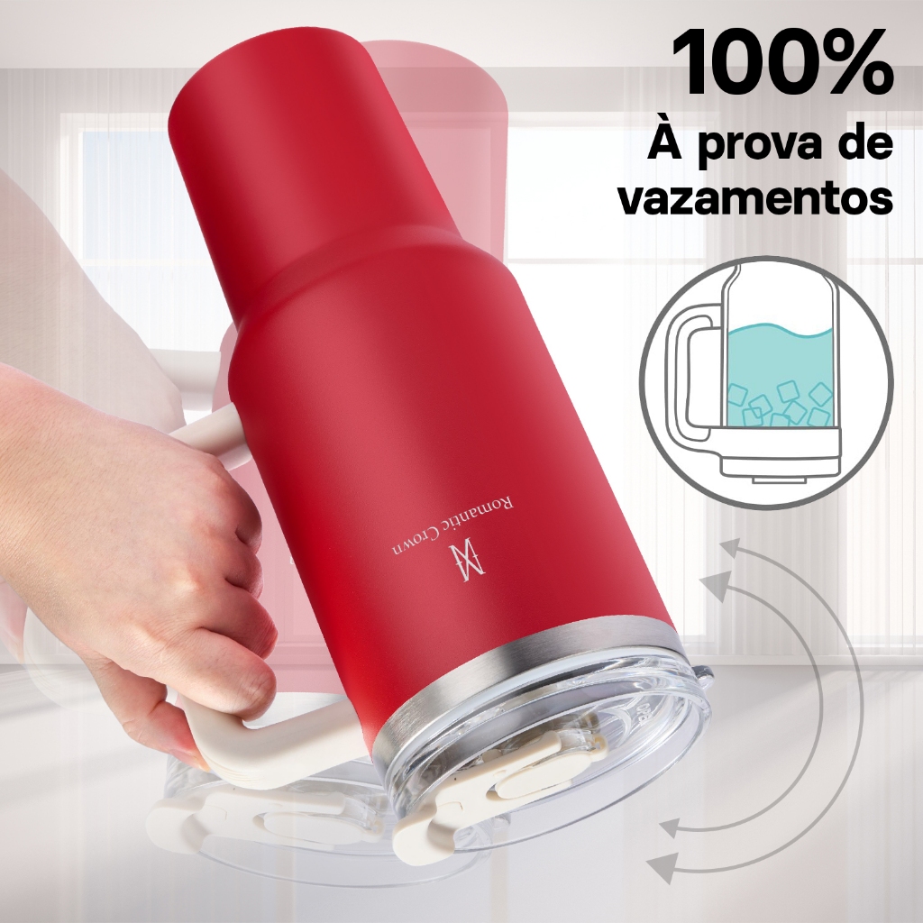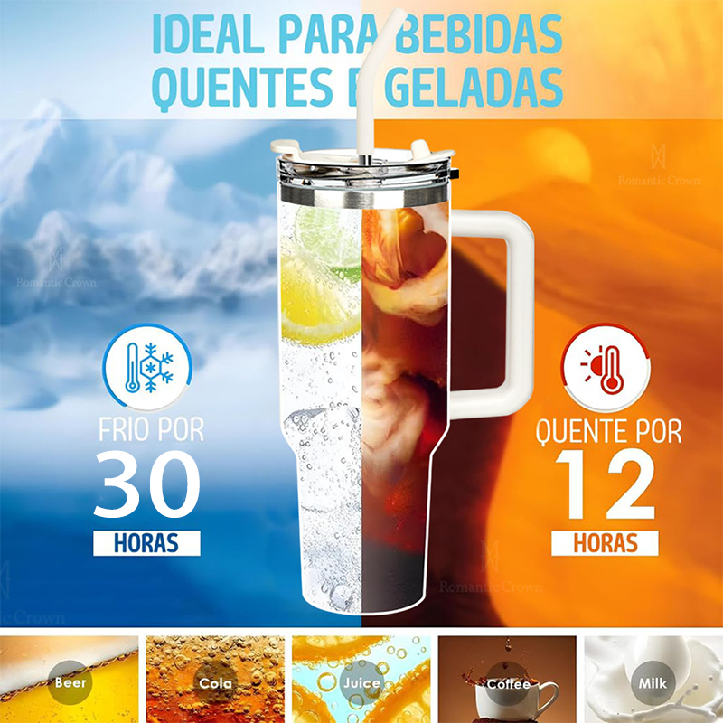 ROMANTIC CROWN Copo Térmico Inox Portátil 1200ml/600ml com Tampa e Canudo Garrafa Térmica de água À prova de vazamentos