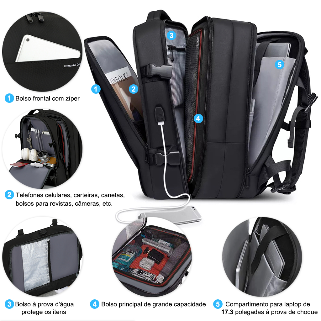 ROMANTIC CROWN Mochila Viagem Executiva Expansível45LMasculina e Feminina Reforçada para Notebook Mochila multifuncional