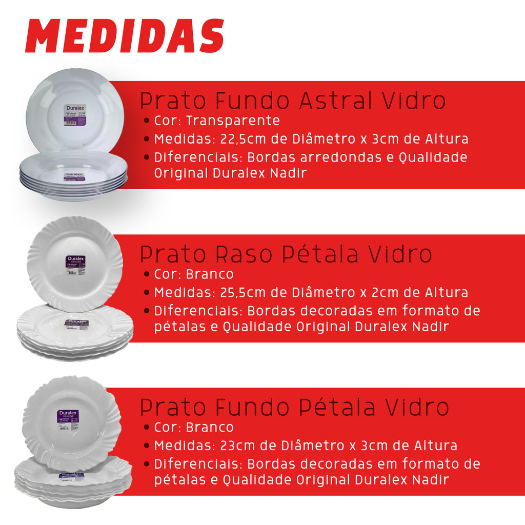 Jogo com 6 Prato Astral Fundo ou Pétala Raso ou Fundo e 6 Copos de Vidro Laguna 265ml Transparente Kit 12 Unidades