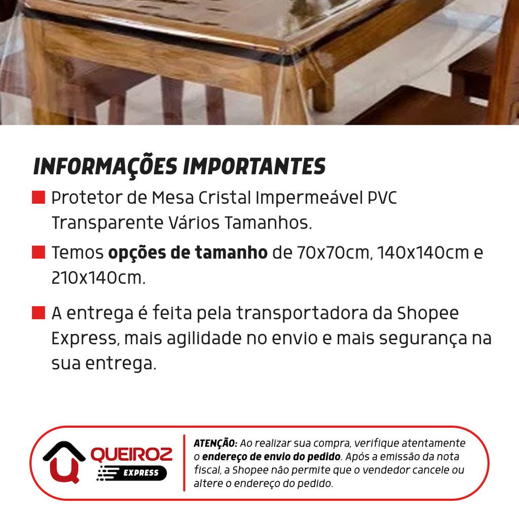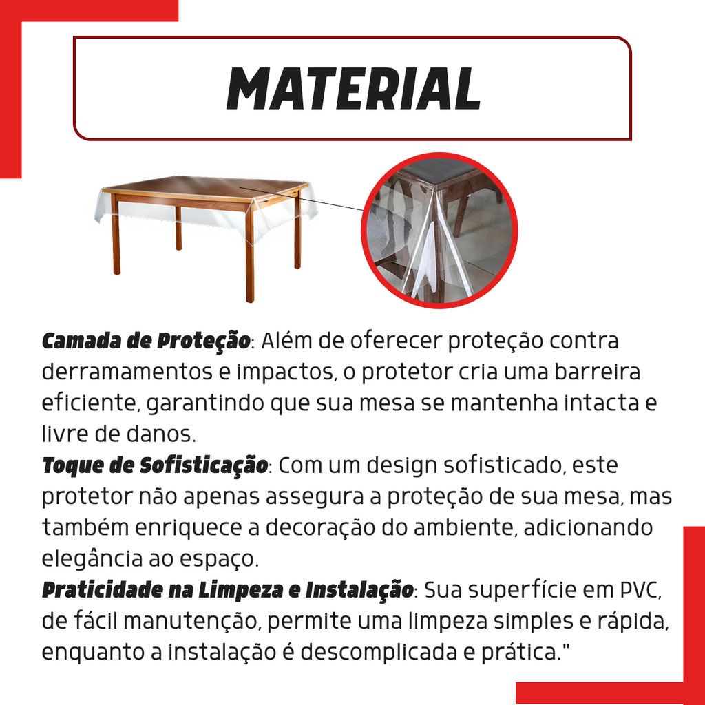 Protetor Toalha de Mesa Cristal Transparente Impermeável Vários Tamanhos Espessura Média