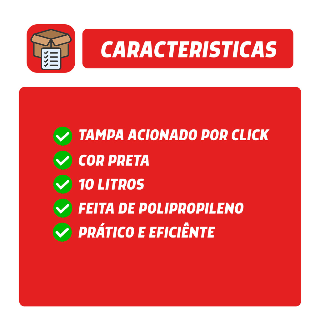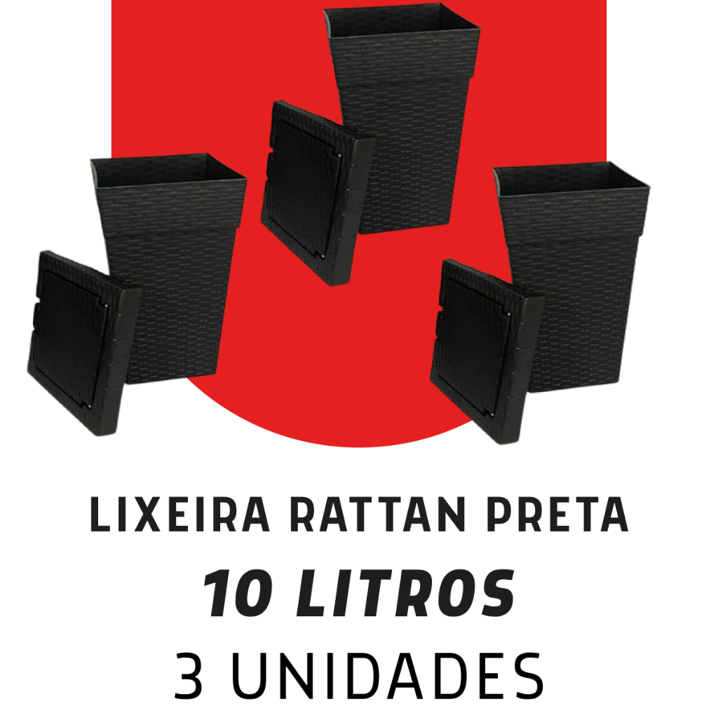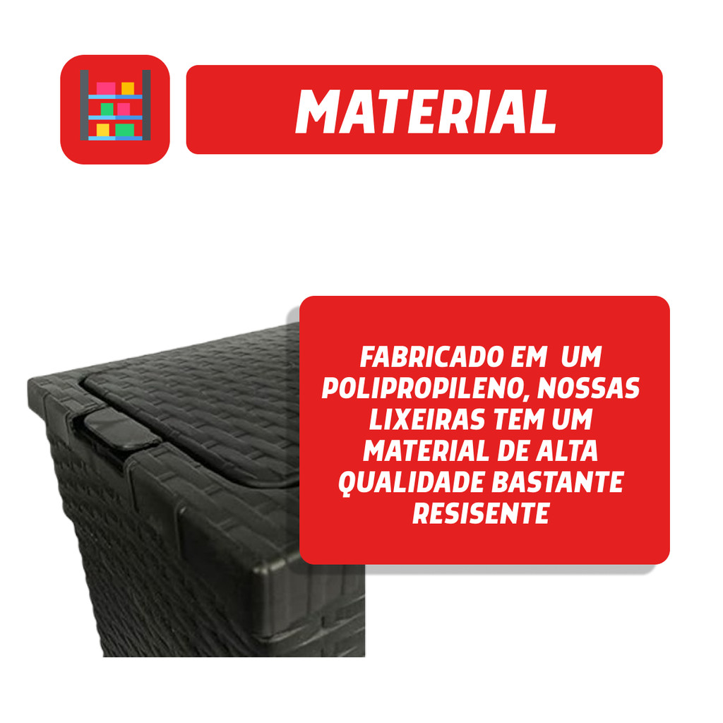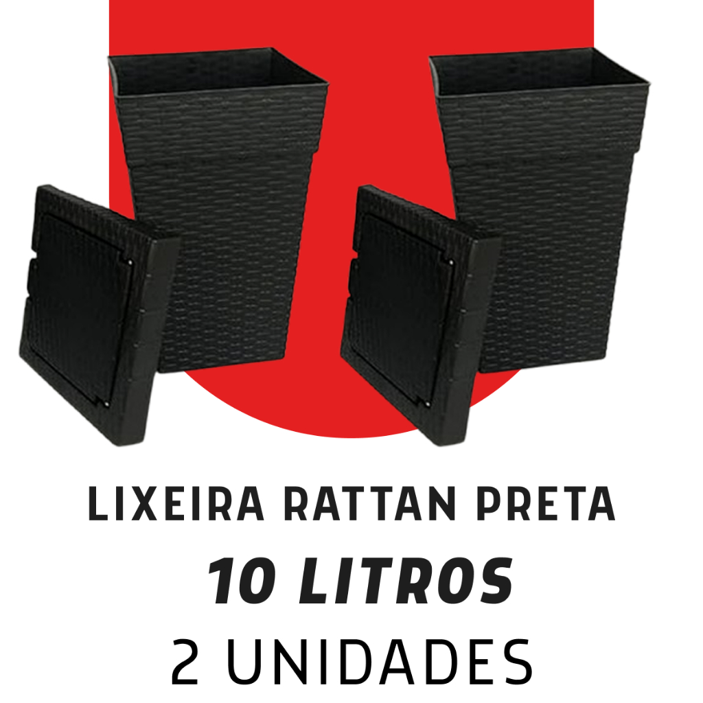 Lixeira 10 Litros Cesto Lixo Rattan Reforçada Tampa Click Banheiro Pia Escritório Cozinha