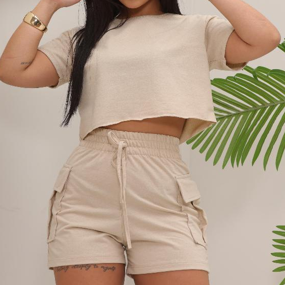 Conjunto Feminino Short Cargo em Moletinho Leve - Perfeito elegante, Confortável