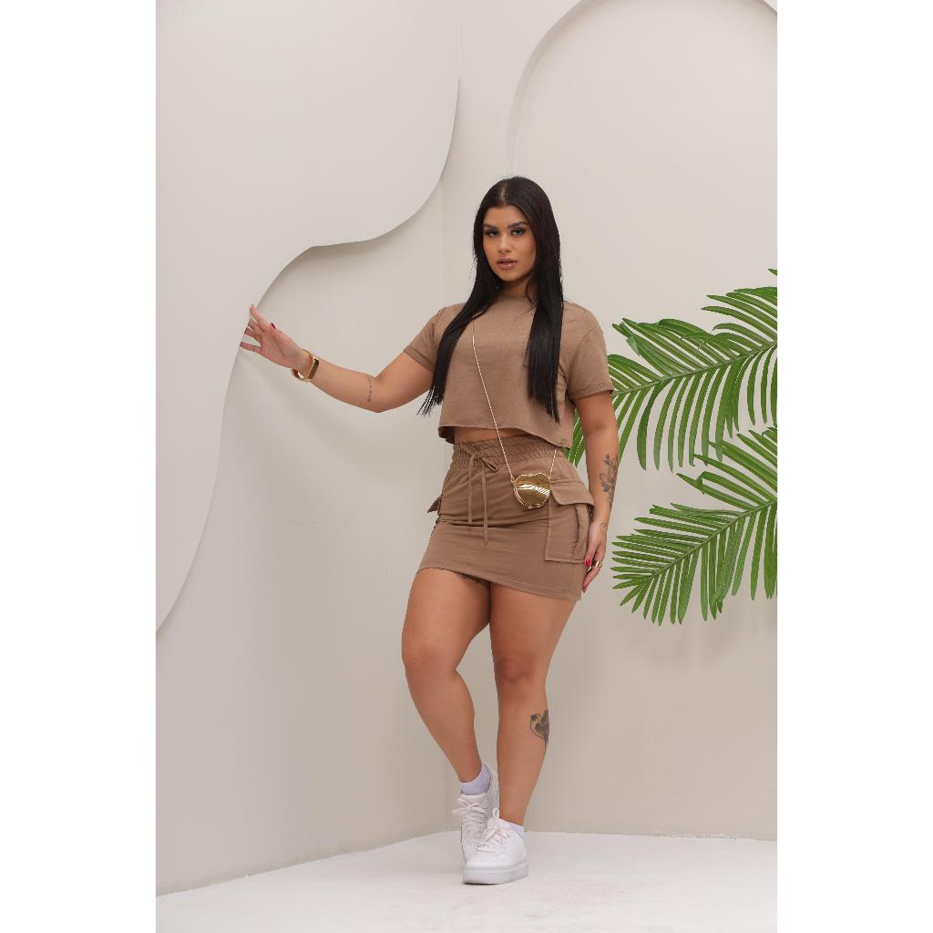 Conjunto Saia Cargo moletinho leve. saia + croopped conjunto moletinho. moleton
