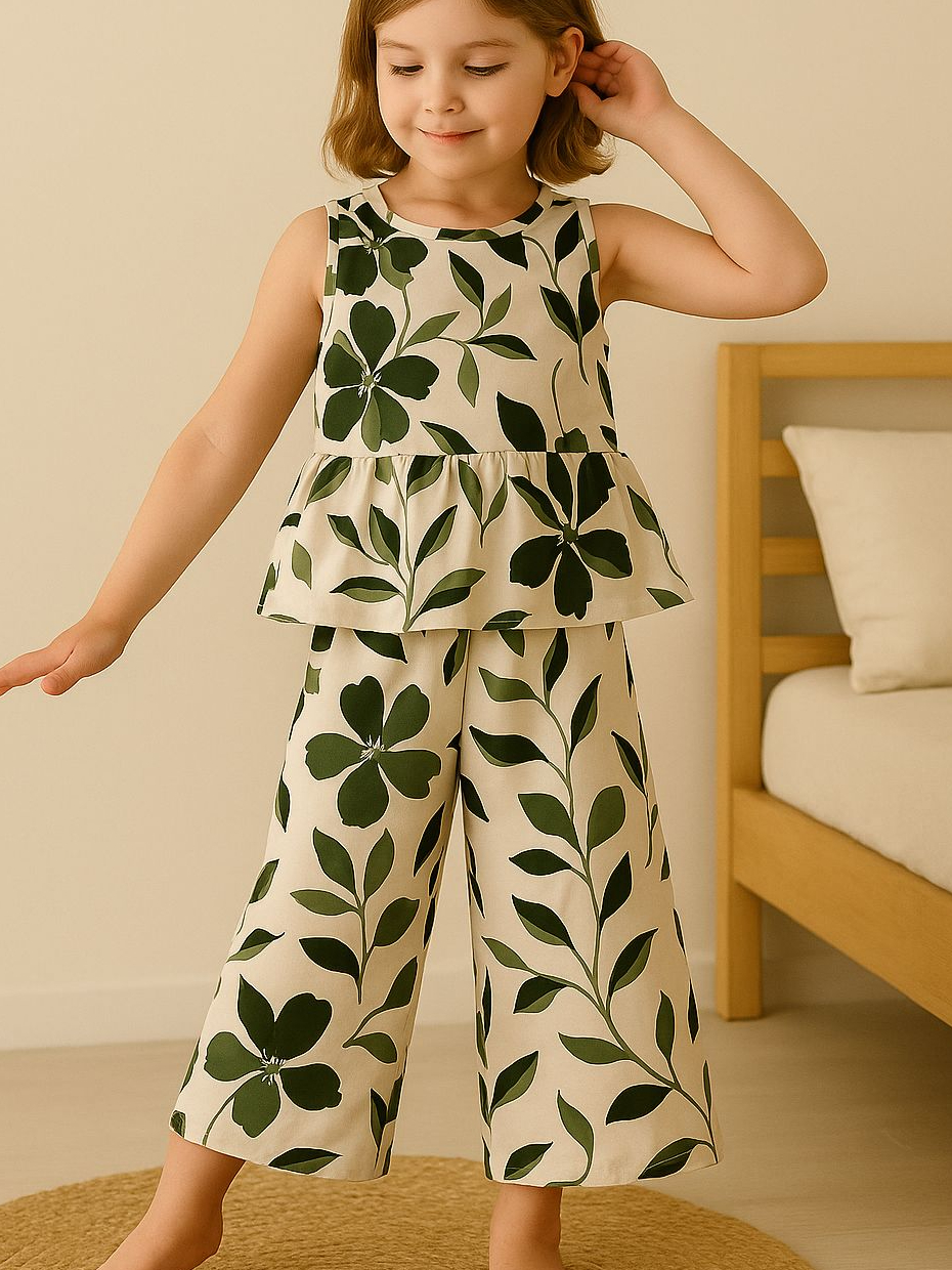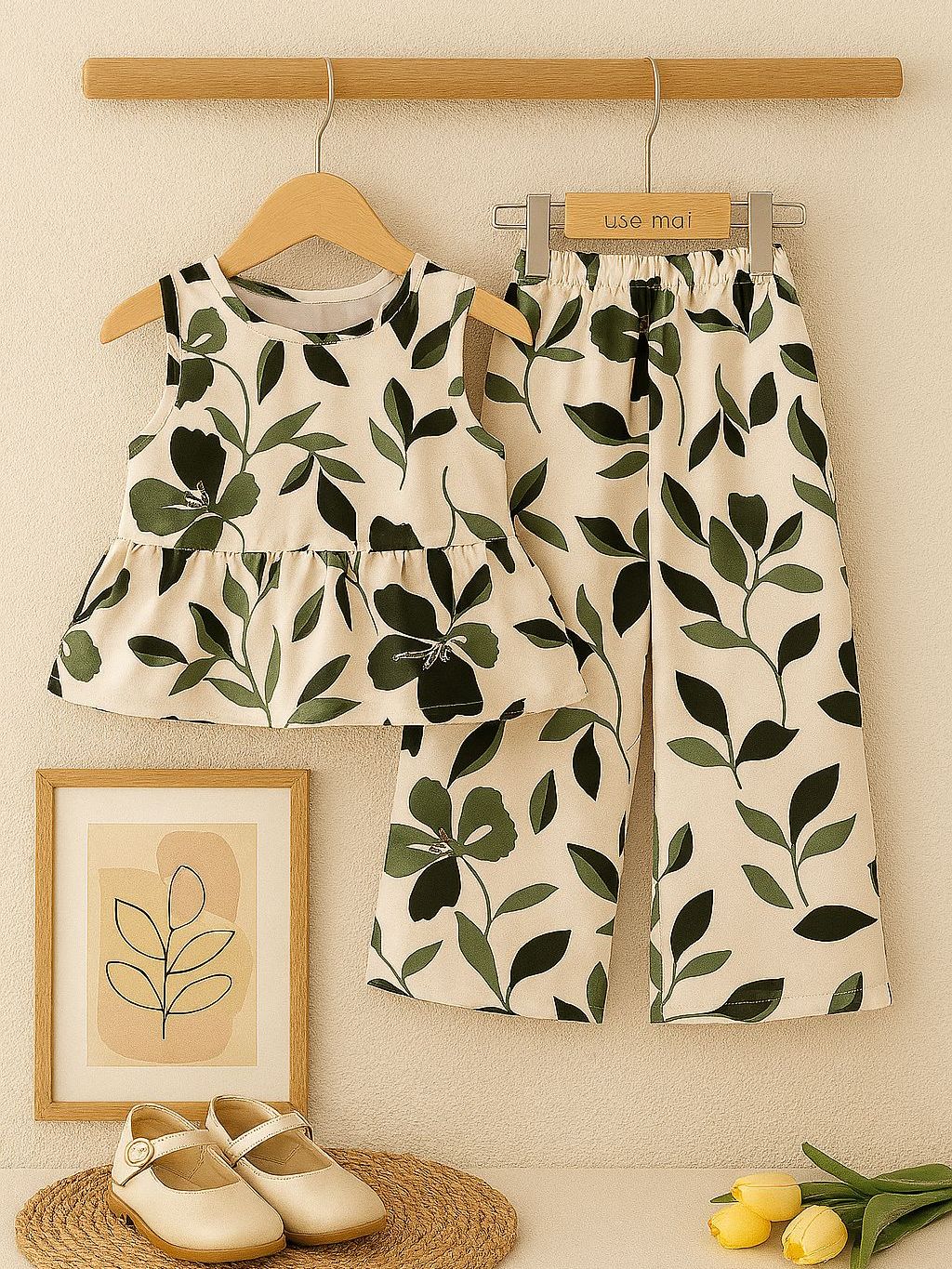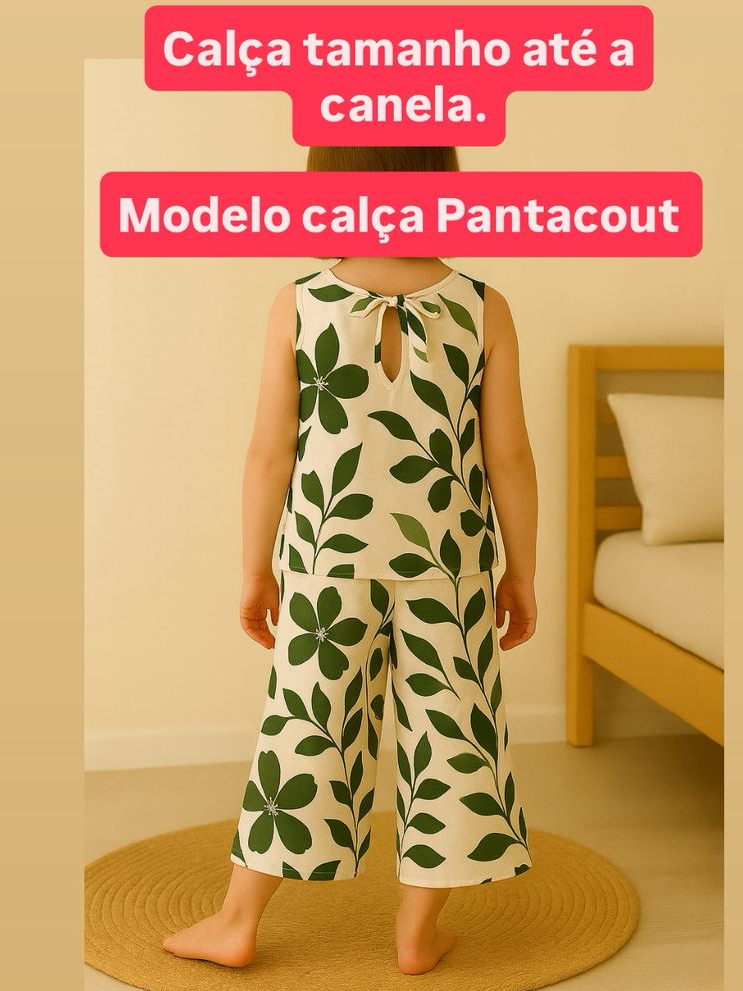 Roupa Infantil Menina Festa 2 anos a 12 anos - Blusa Babado + Calça Foral Pantacout