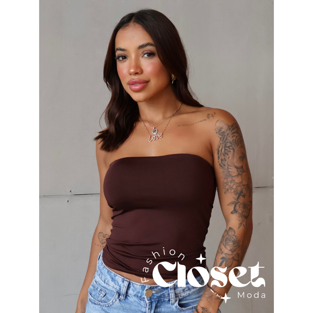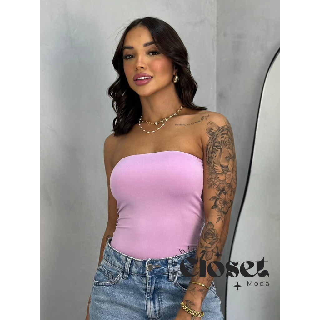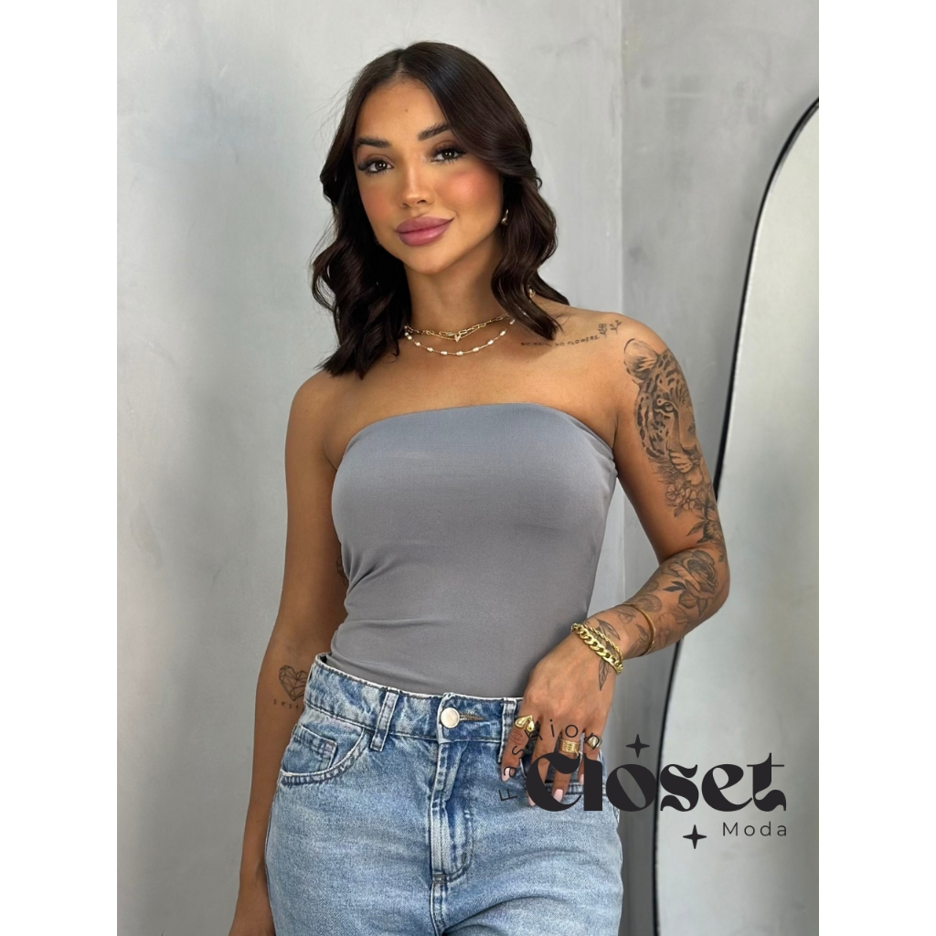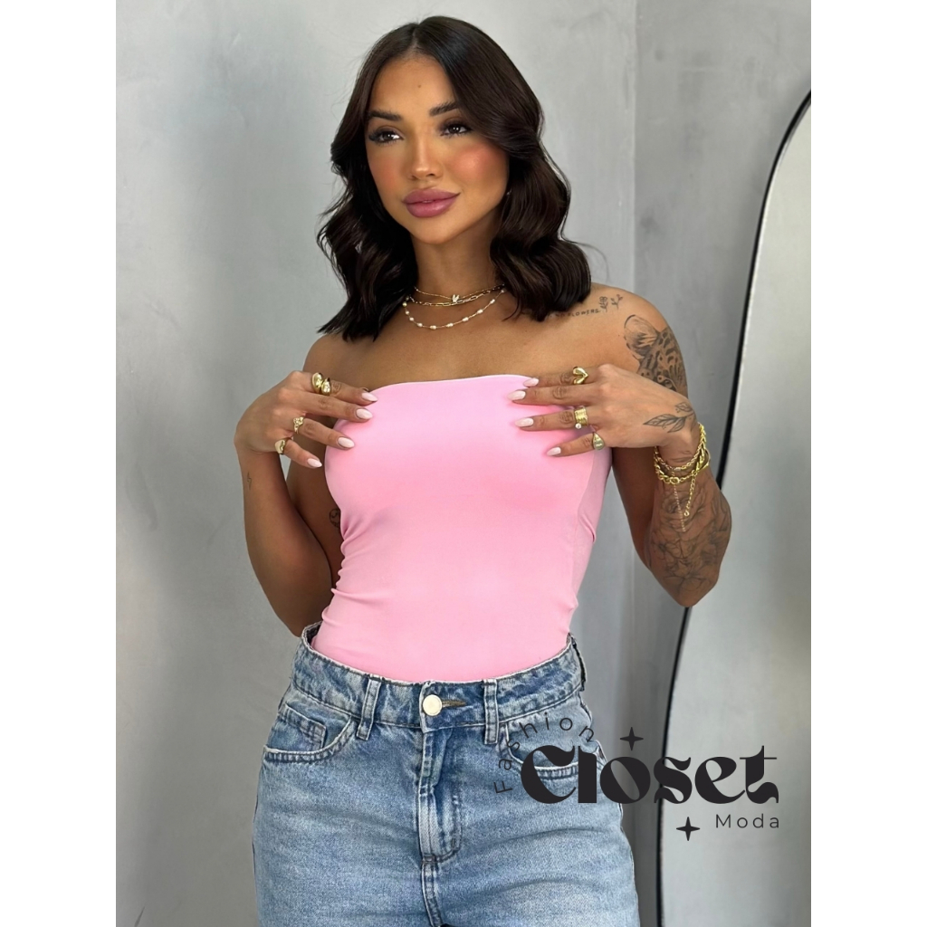 Top Tube Tomara Que Caia Feminino De Suplex Com Forro No Busto Moda Blogueira Básica Tamanho Único