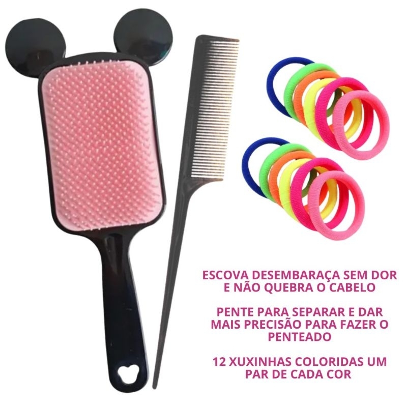 Kit Penteado Infantil 12 Xuxinhas | Escova Raquete | Pente Fino