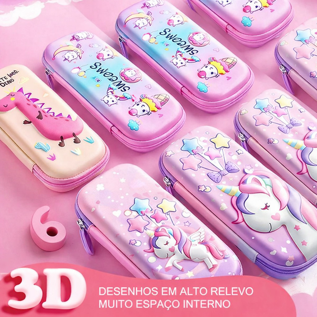 Estojo De Lápis De EVA Infantil Com Desenho Sereia Boneca Coelho 3D Multifuncional Grande Capacidade