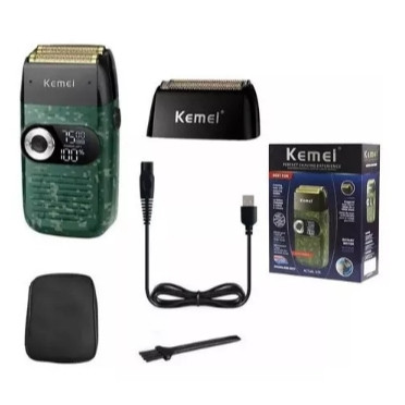Barbeador Elétrico Shaver Kemei Km2027 Bivolt Profissional Cor Verde 110V/220V