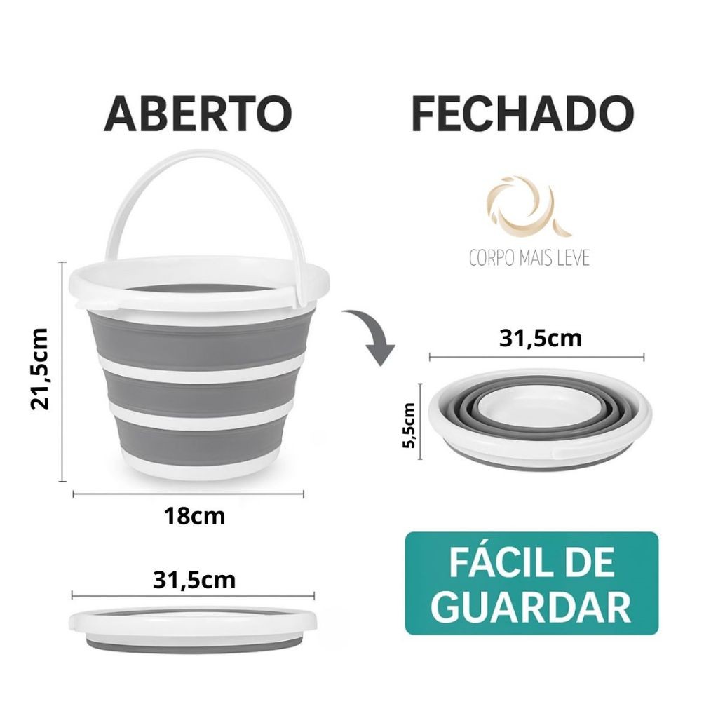 Balde Dobrável 3 5 10 Litros Retrátil de Silicone Multiuso