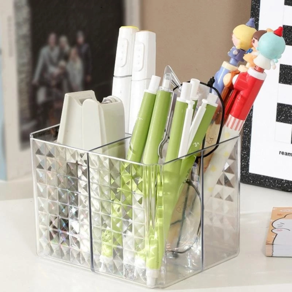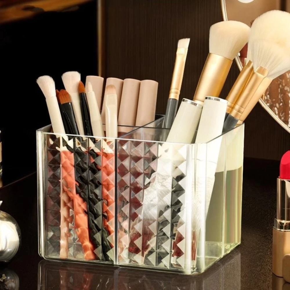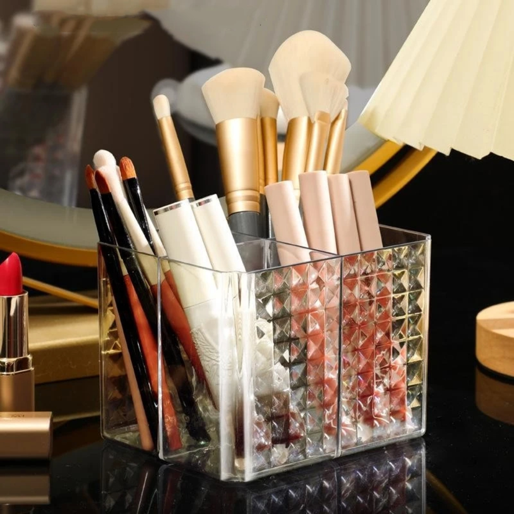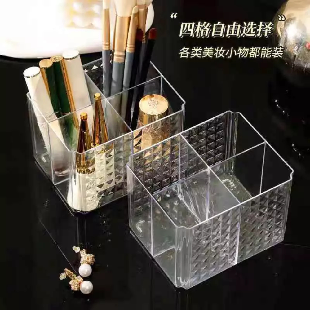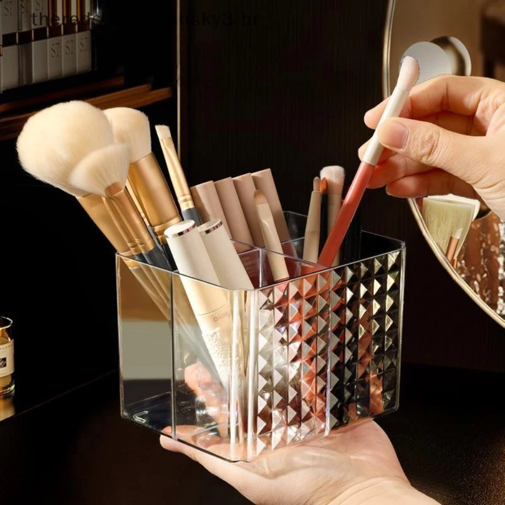 Organizador de Maquiagem Acrílico 4 Divisórias Porta Pincéis e Cosméticos