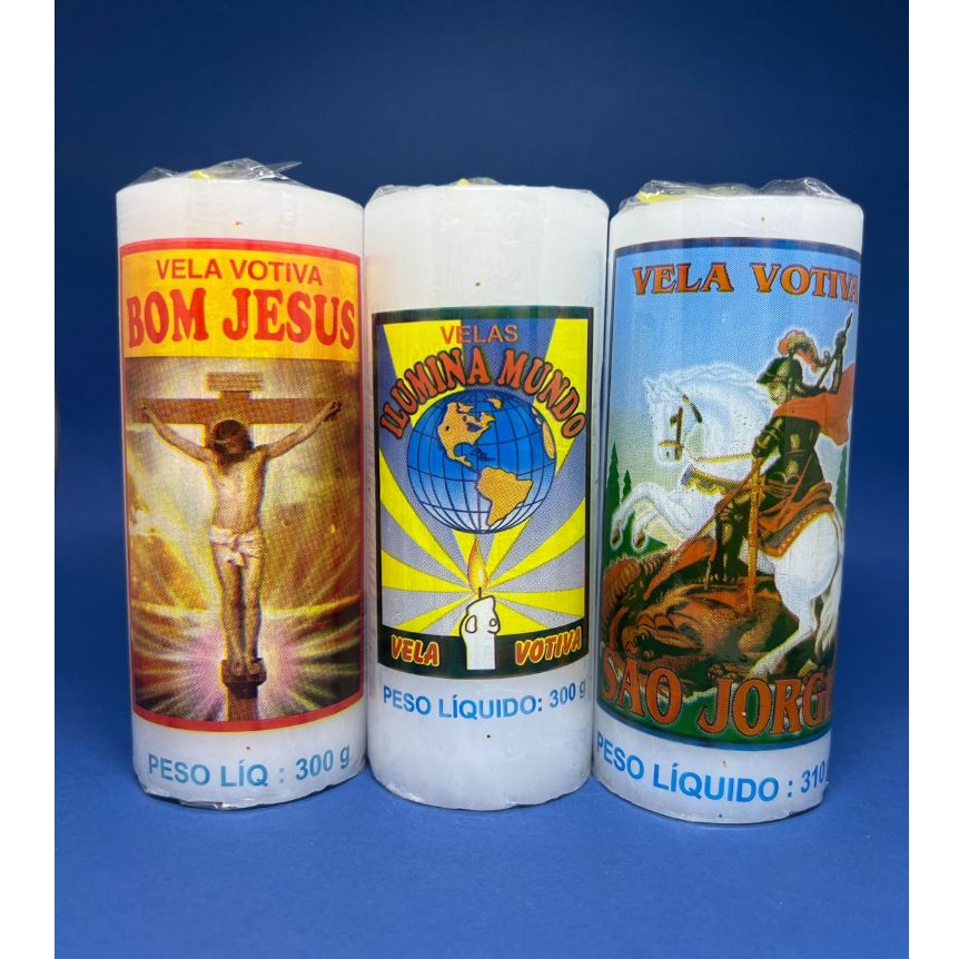 Kit com 12 Velas Votivas 300g 7 dias (Bom Jesus, Ilumina Mundo, São Jorge)