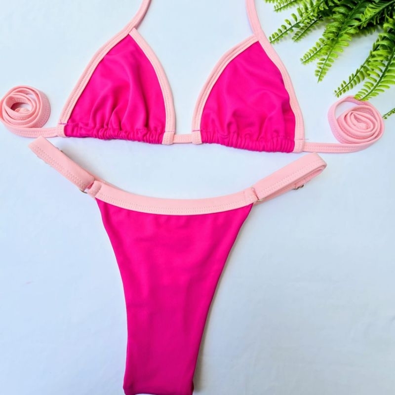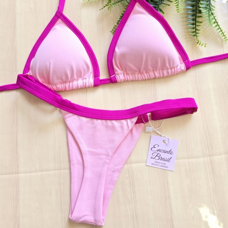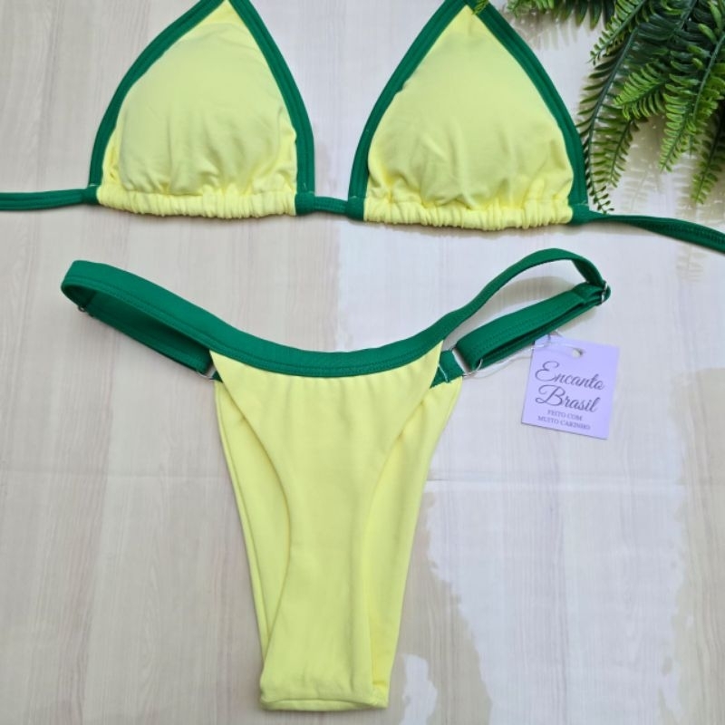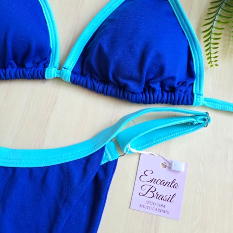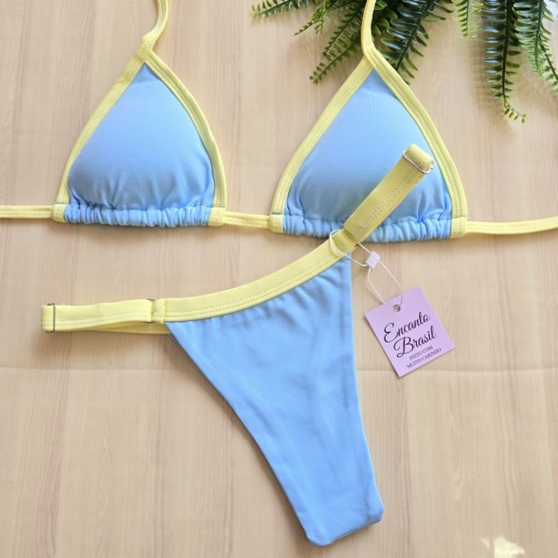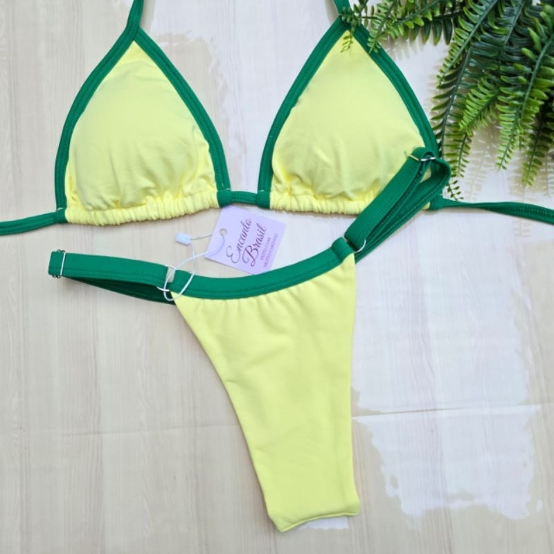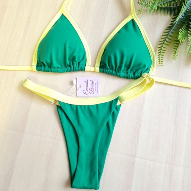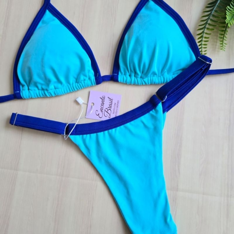 Biquíni Bicolor Cortininha Fita Fio Dental Marquinha bronze Bojo Removível
