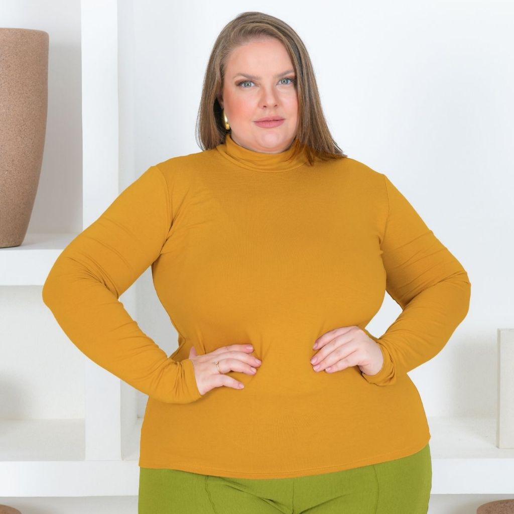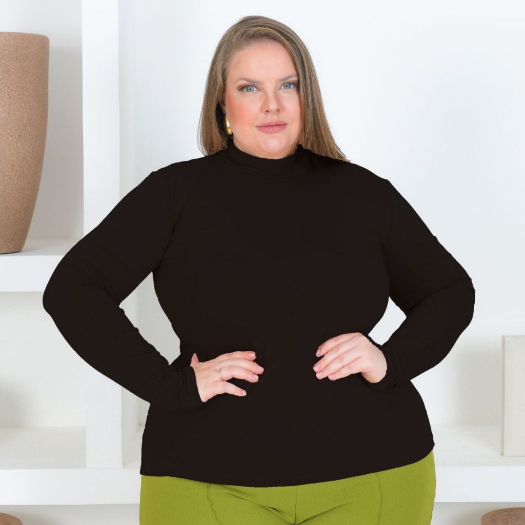 Blusa feminina cacharrel basica manga longa segunda pele viscolycra plus size elegante basic G a G10