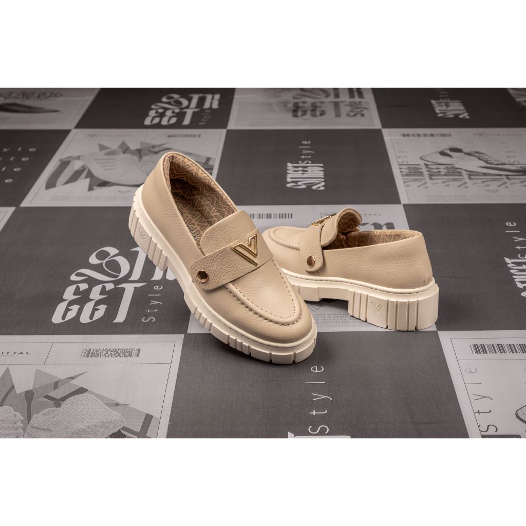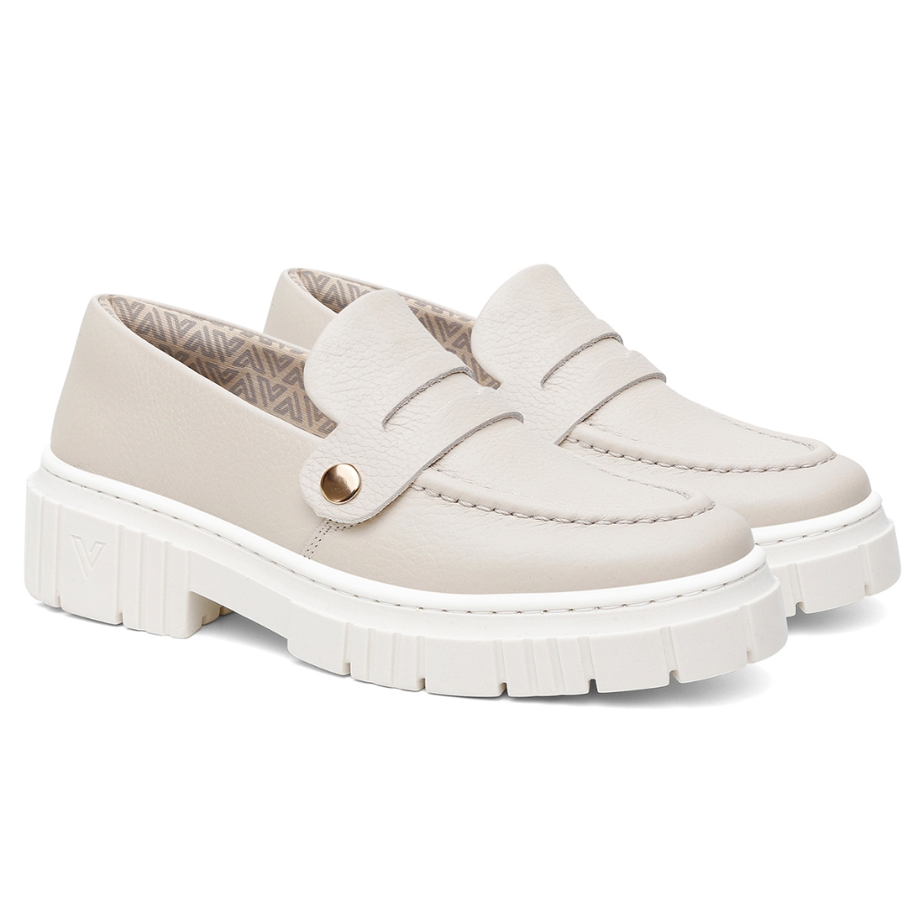 Kit Mocassim Feminino Vittal Couro Legítimo + 3 Fivelas Removíveis Branco Off White