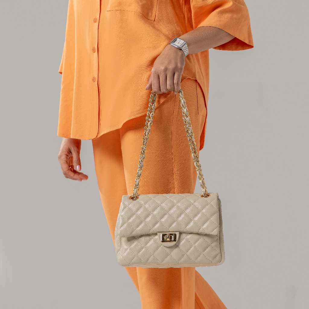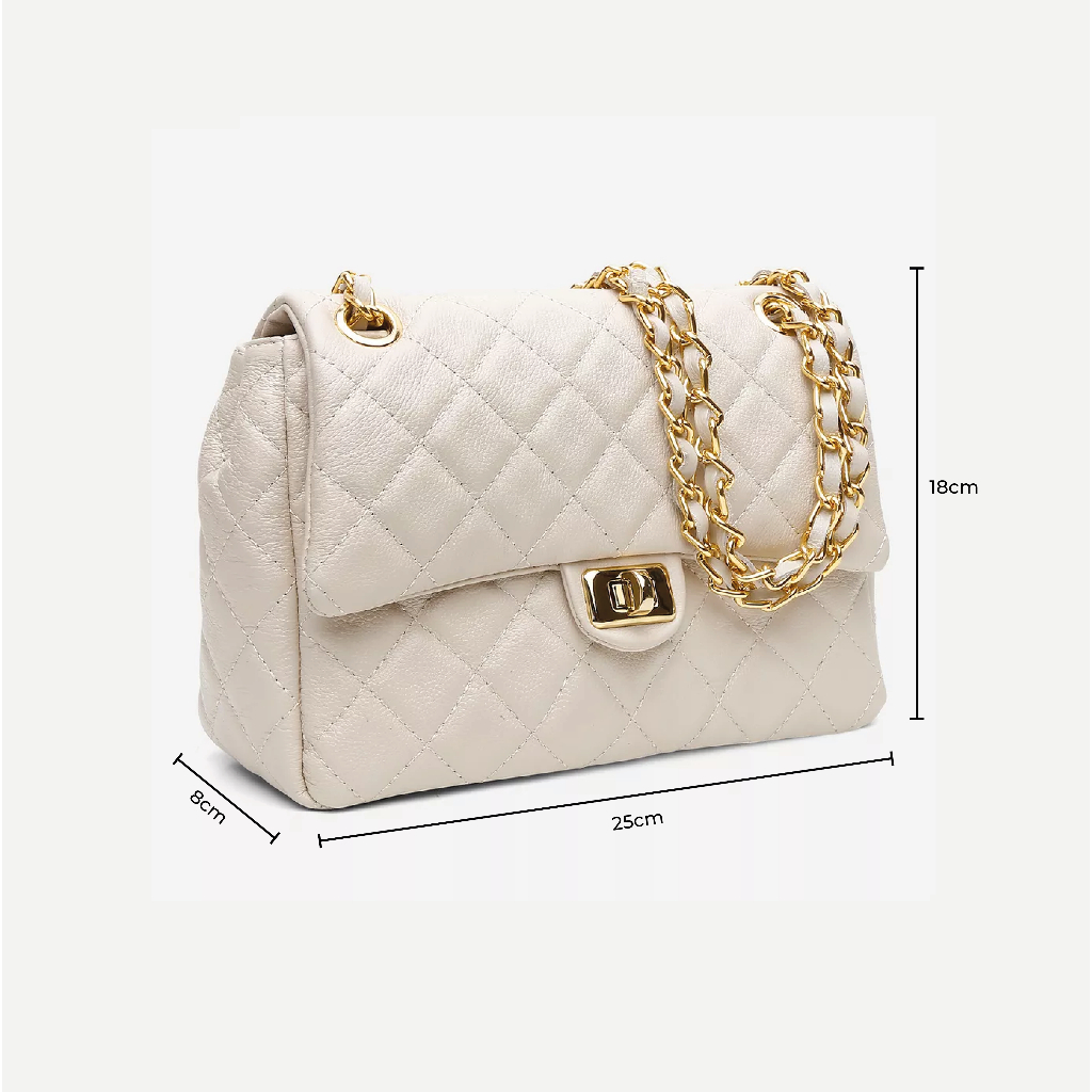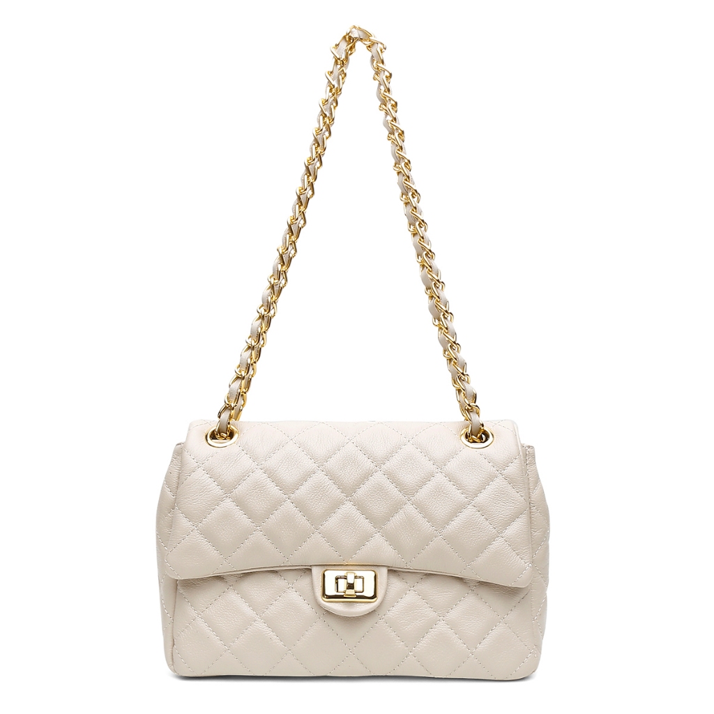 Bolsa Feminina Couro Legítimo Vittal Barbara Design Matelassê Off White