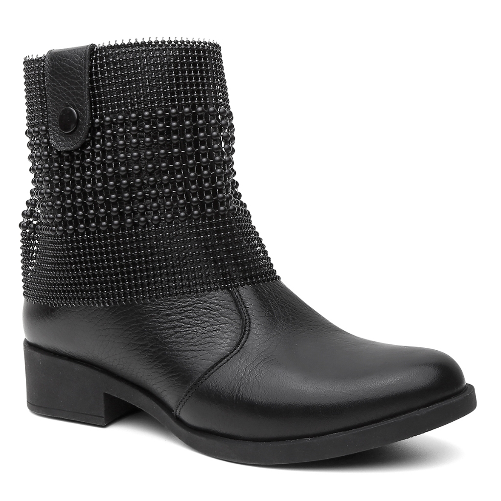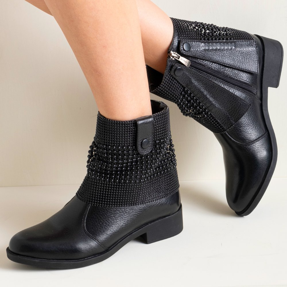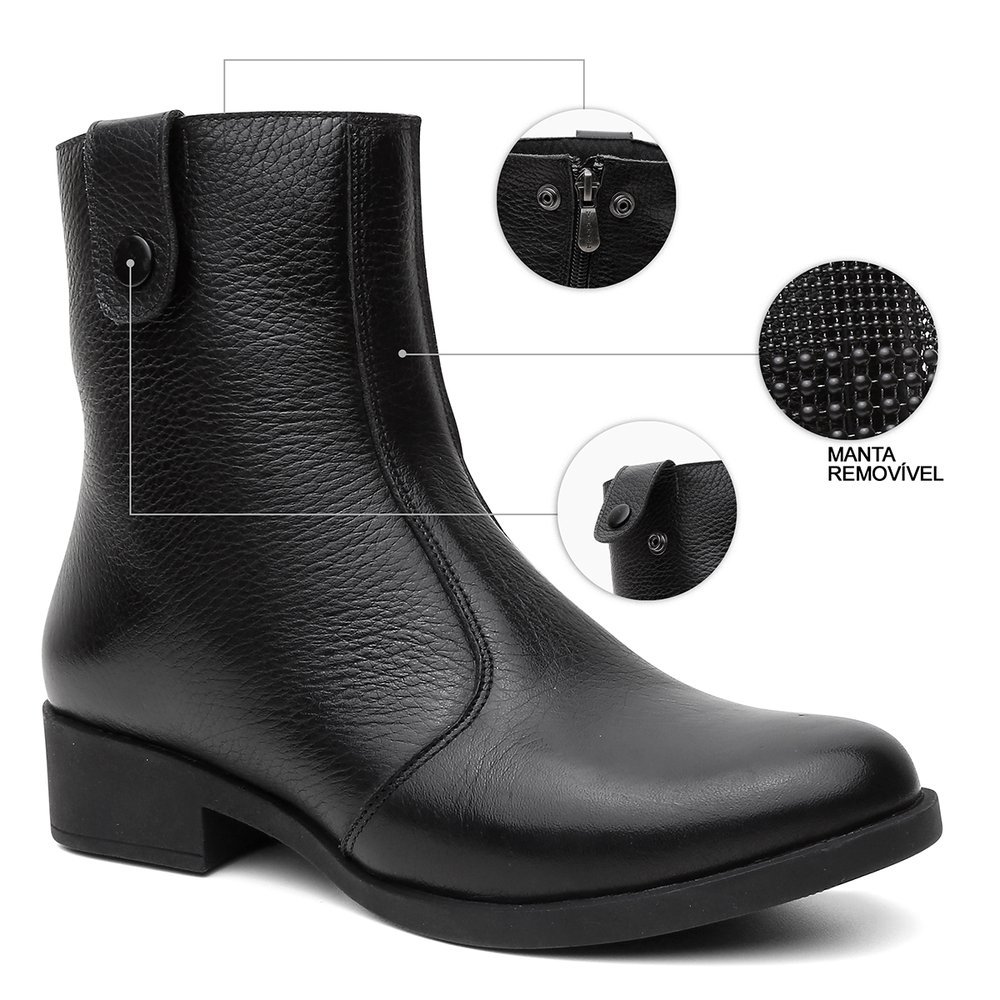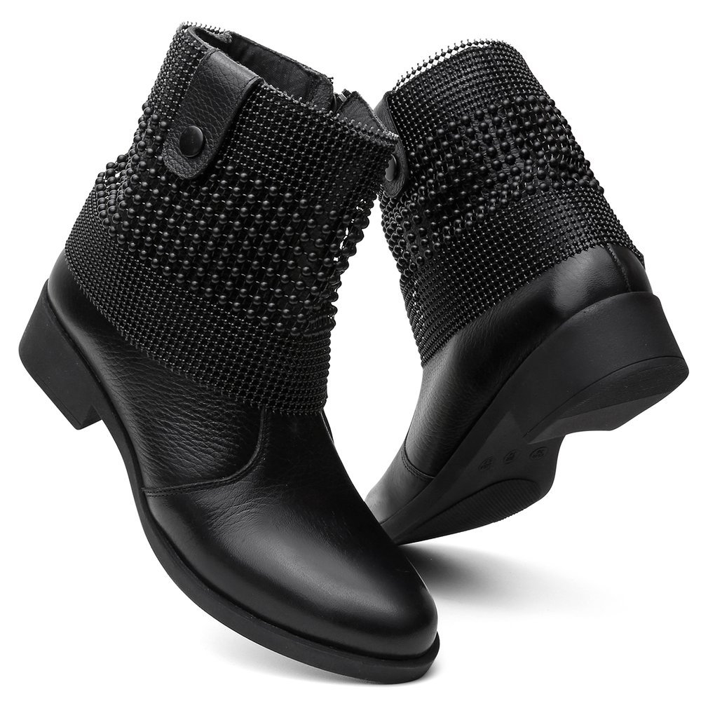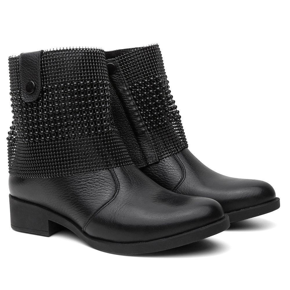 Bota Feminina Couro Legítimo 2 em 1 Vittal Camila Manta Removível Strass Brilho Preta