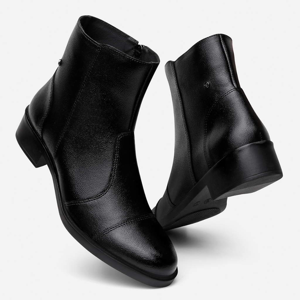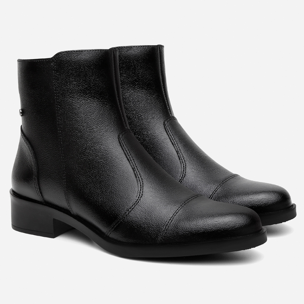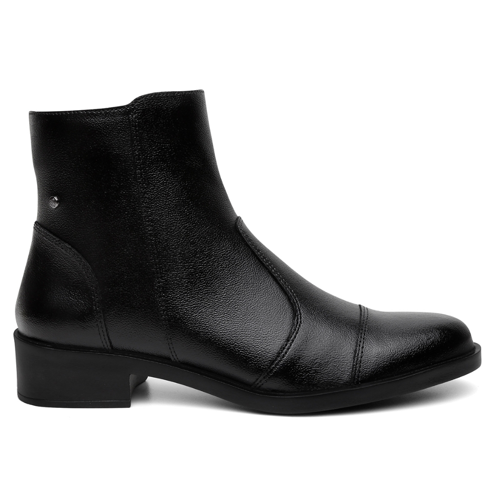 Bota Feminina Vittal Luna Couro Legítimo Luna Preto Cano Baixo com Ziper Lateral