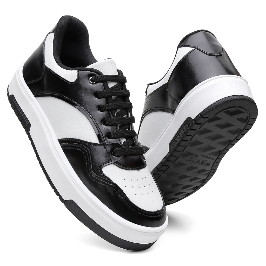 Tênis Feminino Sneakers Vittal Duda Confort Solado Flatform Branco e Preto