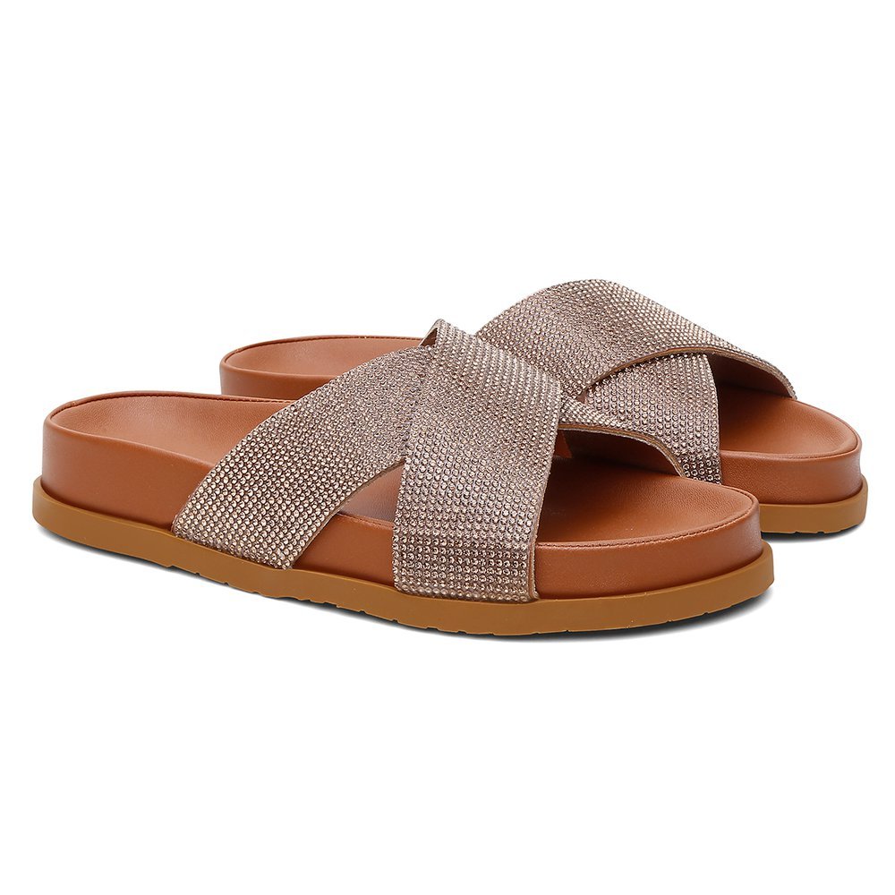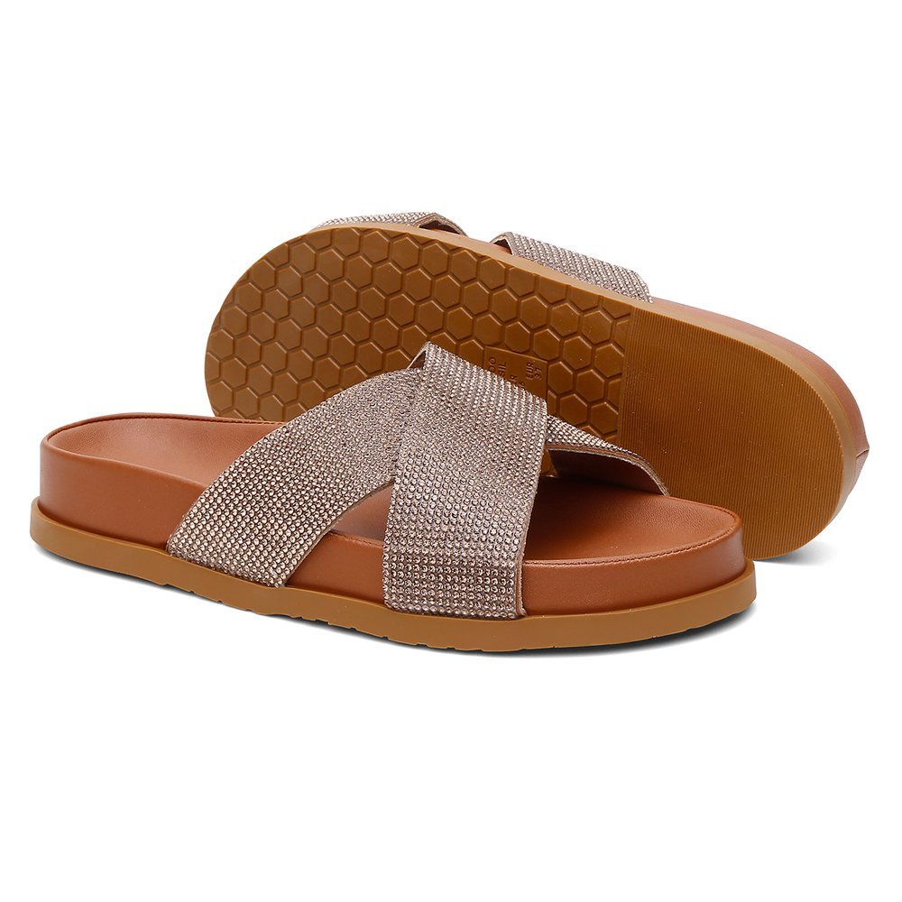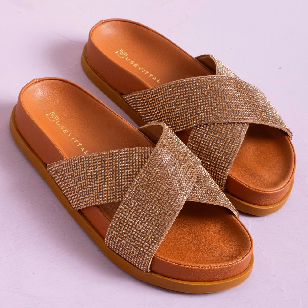 Sandália Feminina Vittal Carol Manta Strass Solado Confort
