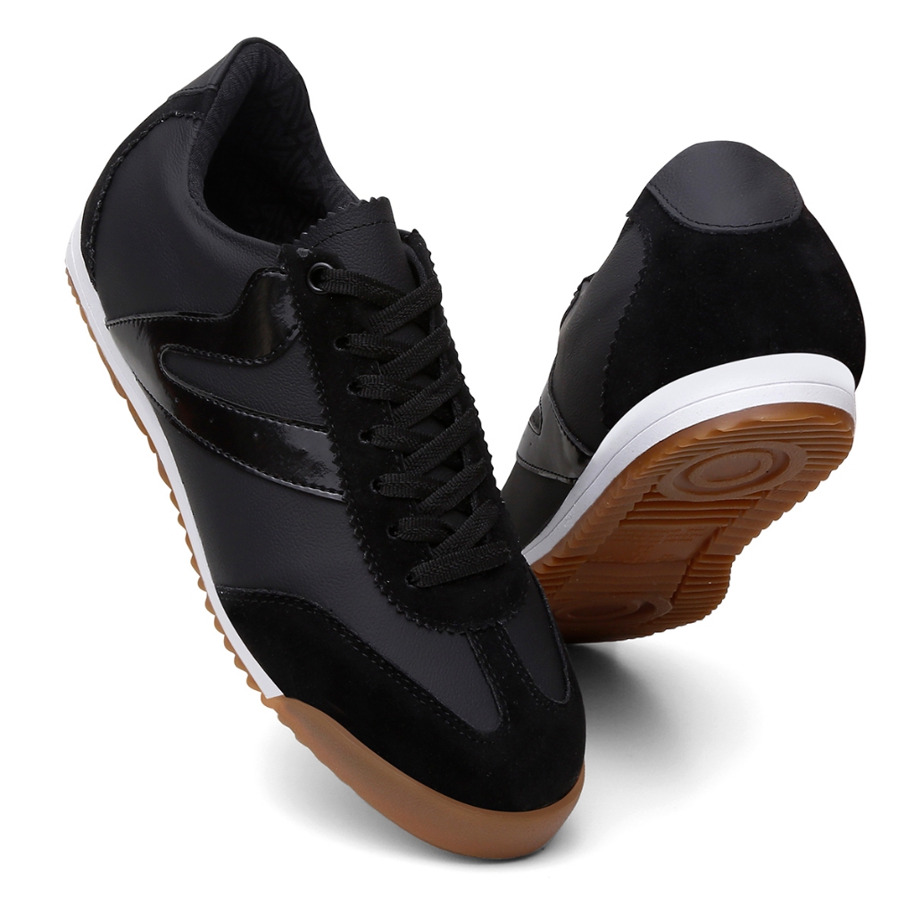 Tênis Feminino Vittal Couro Legítimo Naomi Casual Clássico Retrô Preto