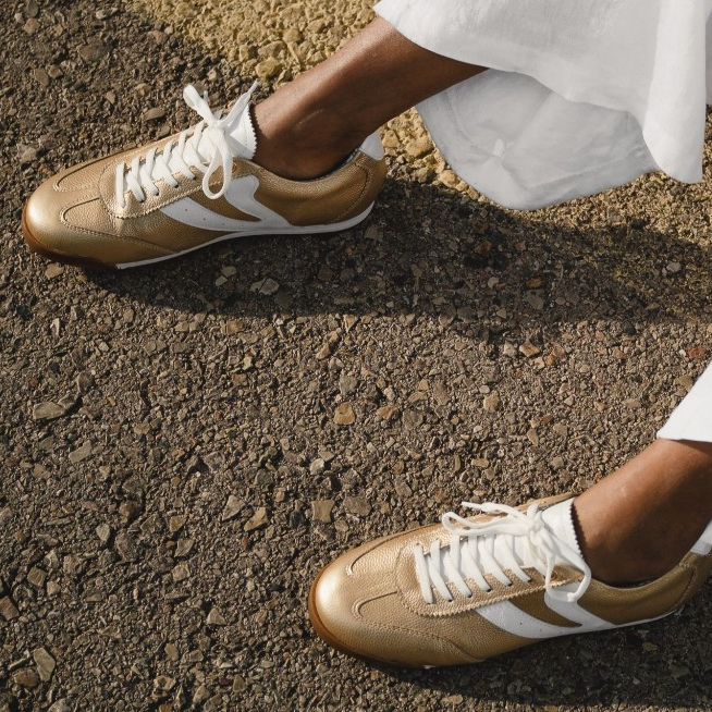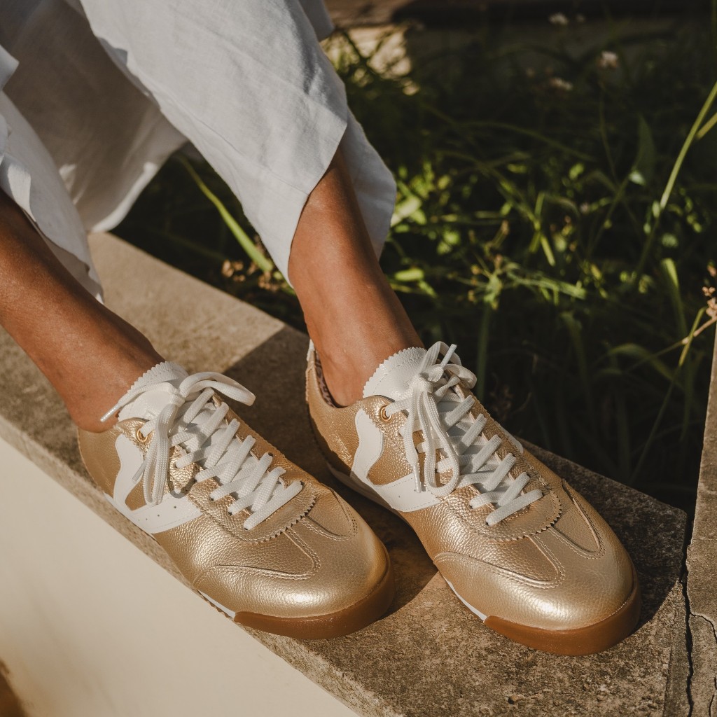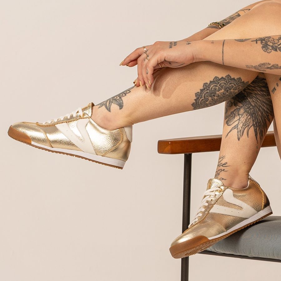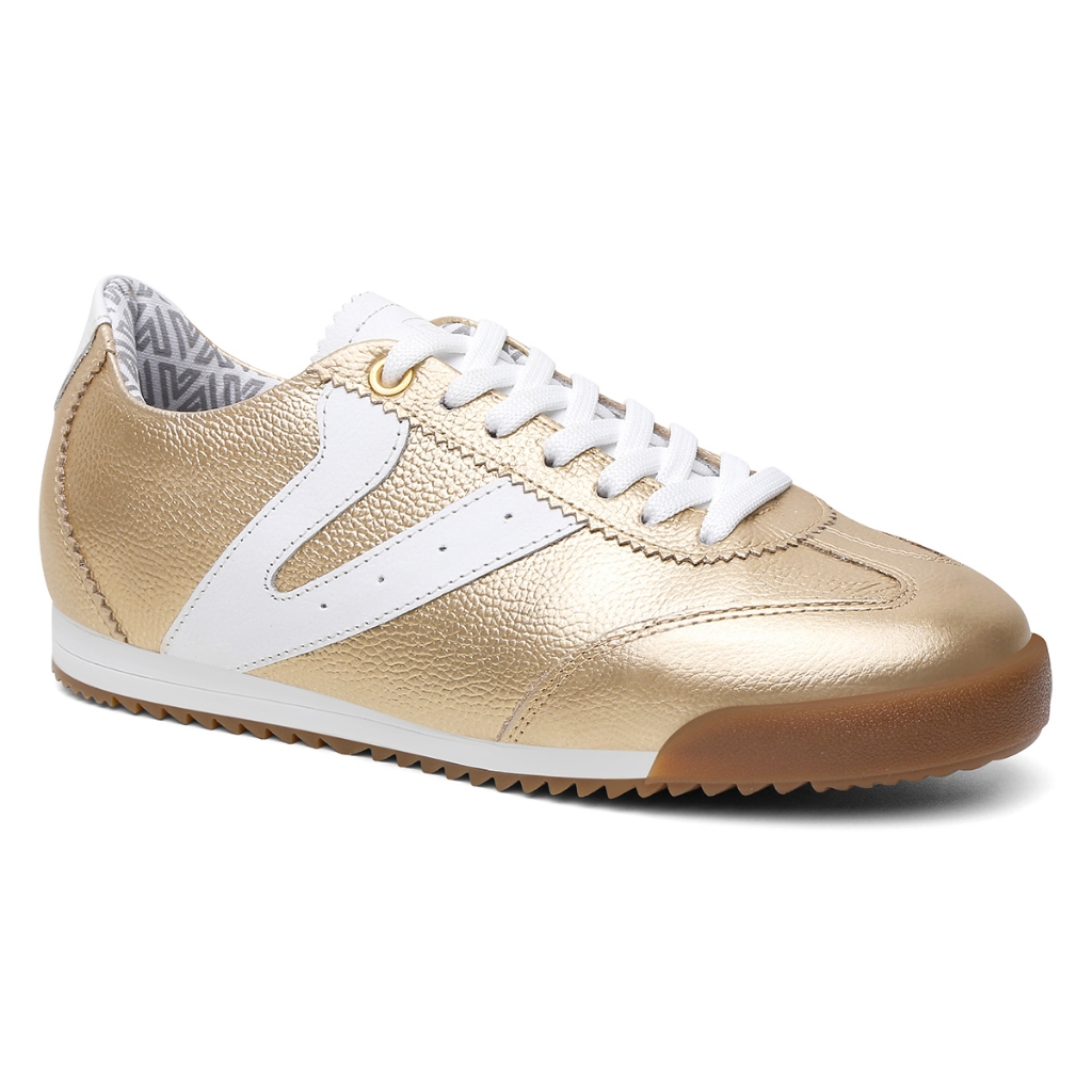 Tênis Feminino Vittal Couro Legítimo Naomi Casual Clássico Retrô Dourado