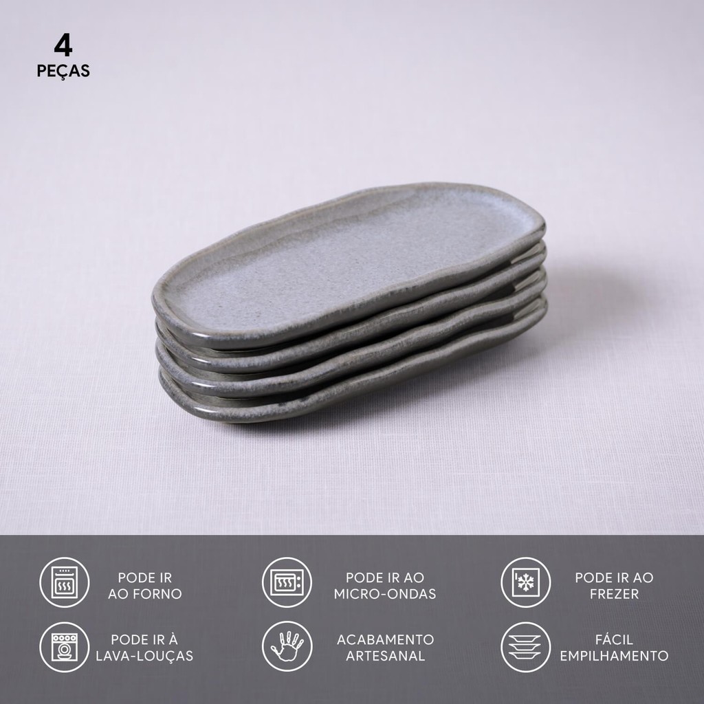 Conjunto com 4 Travessas Oval Rasa Mini Orgânico Dust 16,5x8cm