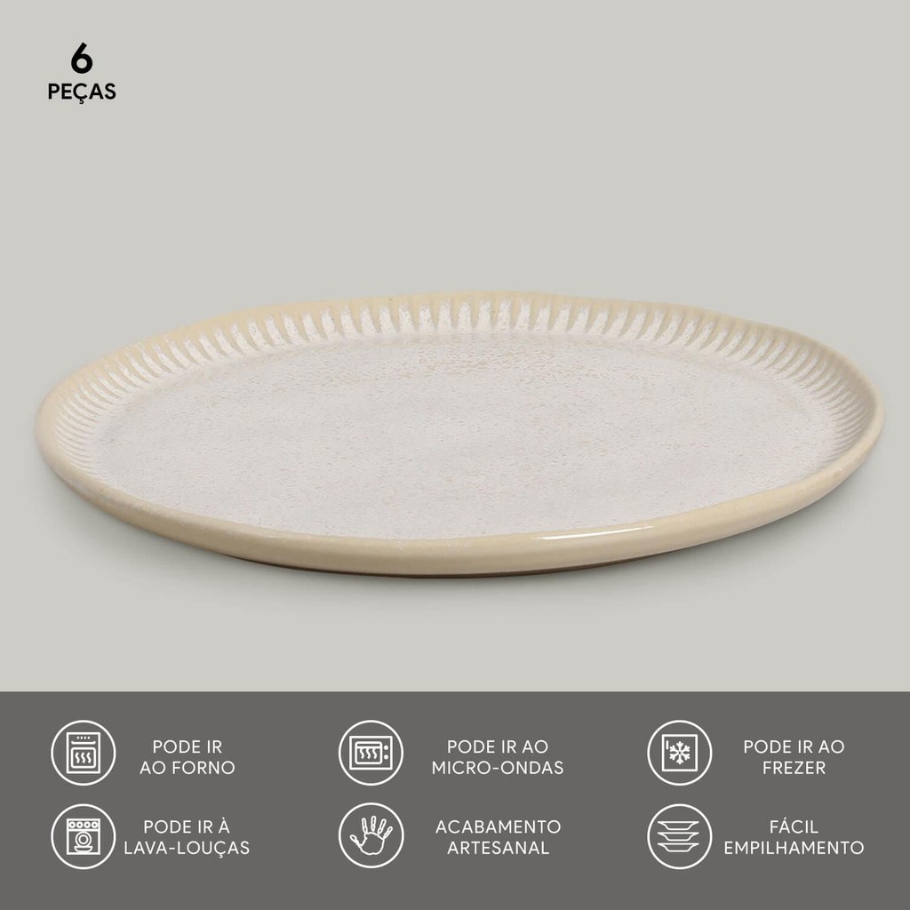 Conjunto com 6 Pratos Raso Linhas Latte Ø27,5cm