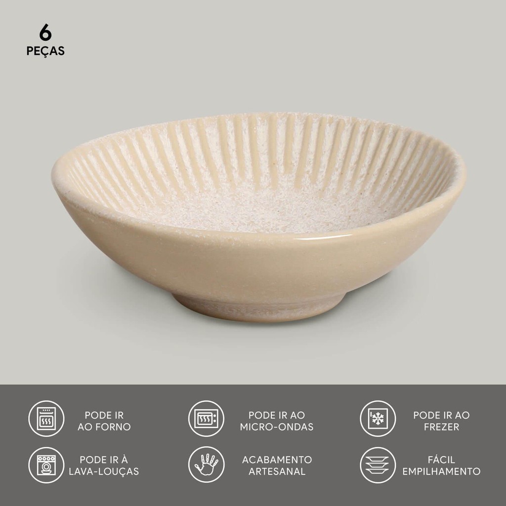 Porto Brasil Conjunto Com 6 Cumbucas Linhas Latte Ø15X5,5Cm 370Ml