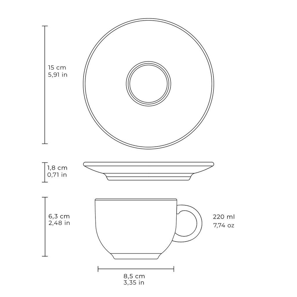 Conjunto com 6 Xícaras de Chá com Pires Coup Stoneware New Mediterrâneo 230ml