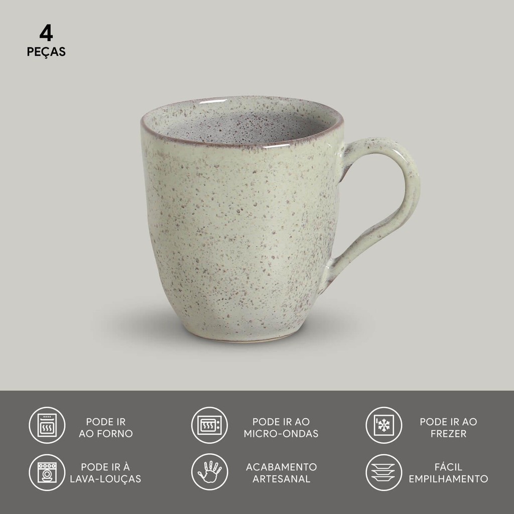 Conjunto com 4 Canecas Orgânico Pistache 273ml