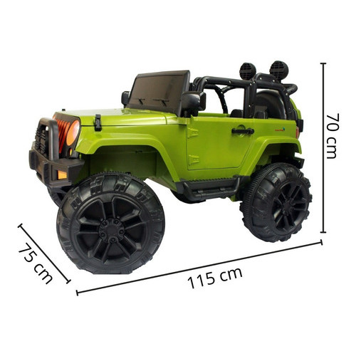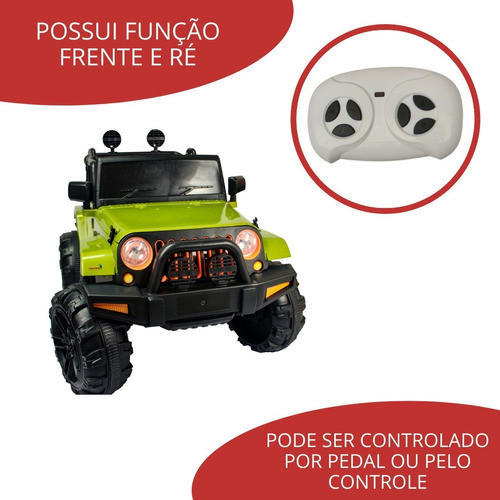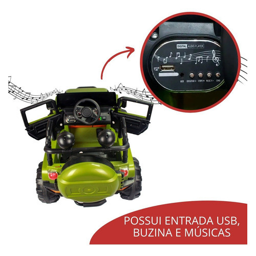 Mini Carro Elétrico Infantil 12v Usb Aux Jipe Verde Bw028 Com Controle Remoto Som Luz Farol