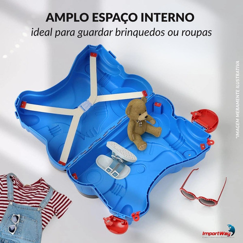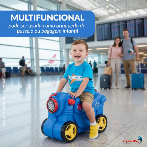 Mala Infantil 2 Em 1 Azul Com Carrinho De Passeio Rodinhas E Espaço Interno Ideal Para Viagens