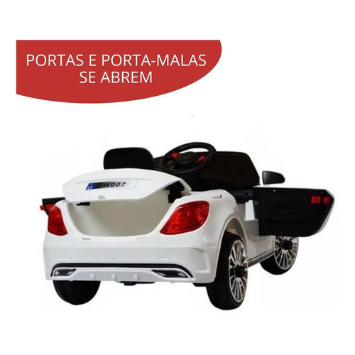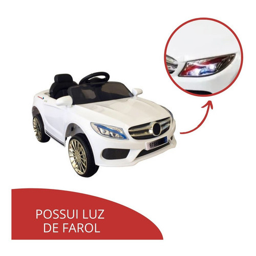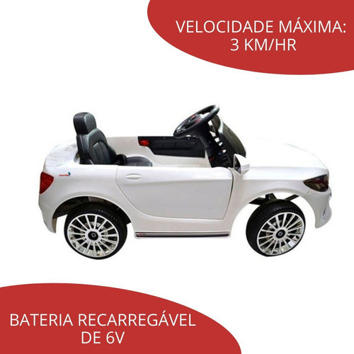 Mini Carro Carrinho Elétrico De Passeio Infantil Branco 6v Motorizado Luz E Som Controle Remoto Com Buzina