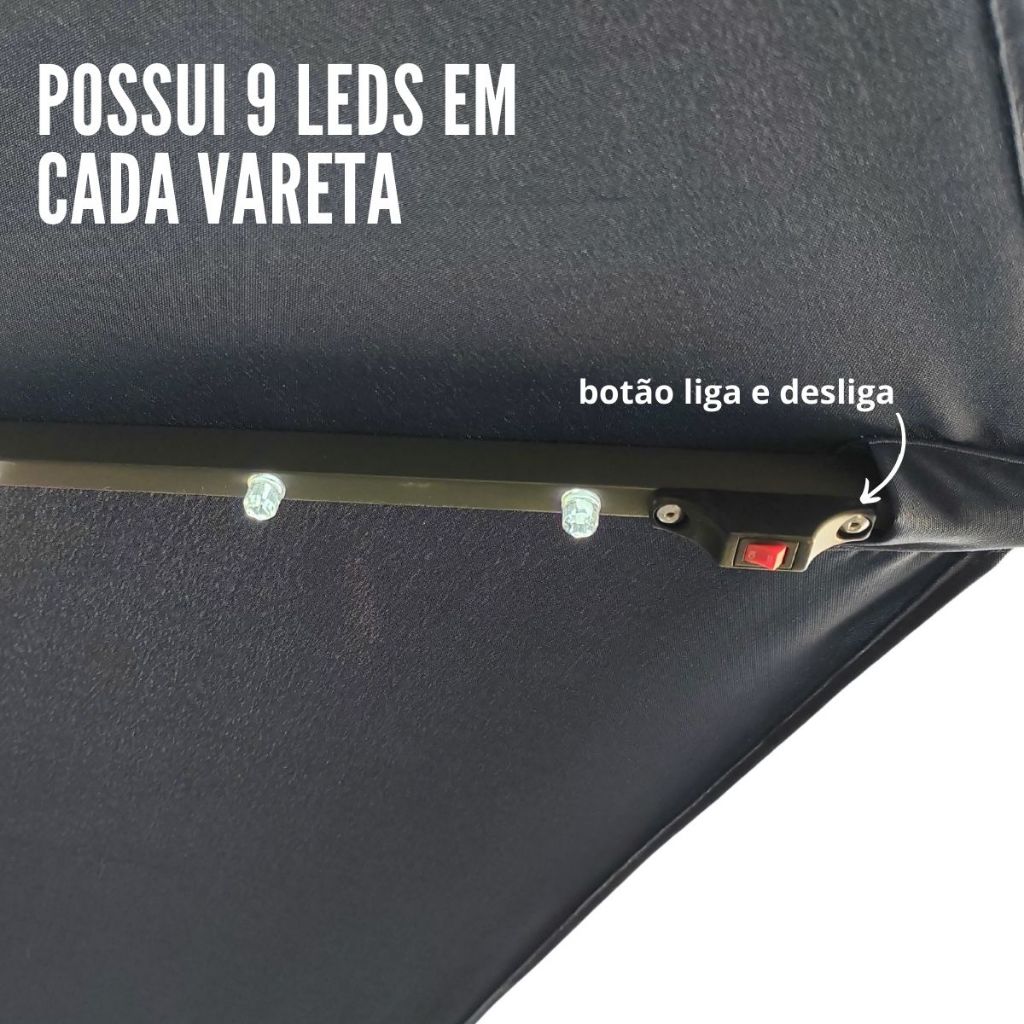 Ombrelone Guarda Sol Lateral 3,00m C/ Led Importway P/jardim, deck, piscina, espaço gourmet