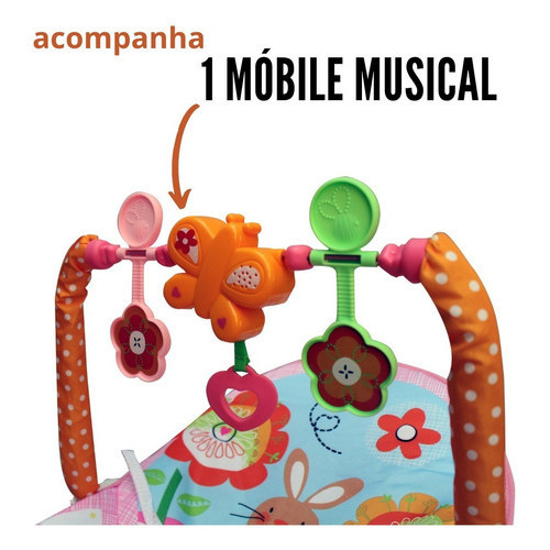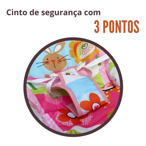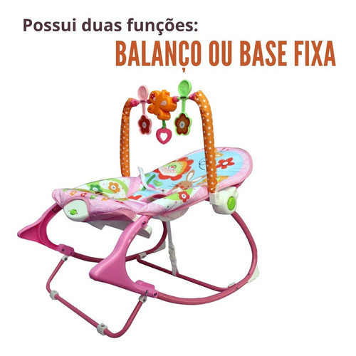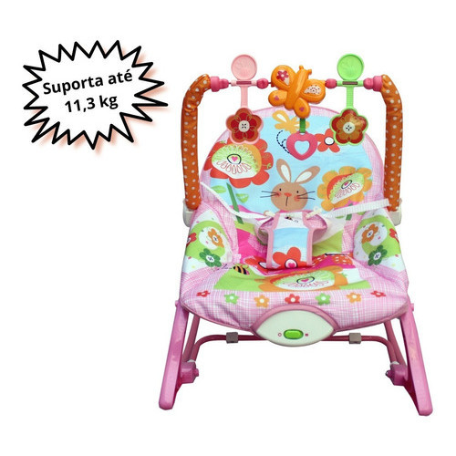 Cadeira Descanso Bebê Vibratória Acolchoada Som Balanço Relaxante de Menina Rosa