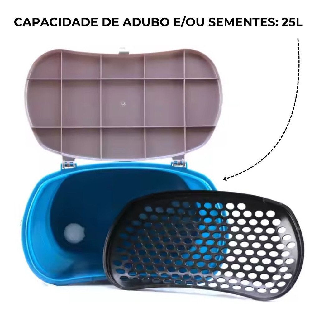 Semeadeira Elétrica Costal com Espalhador, 25L, Alça Regulável